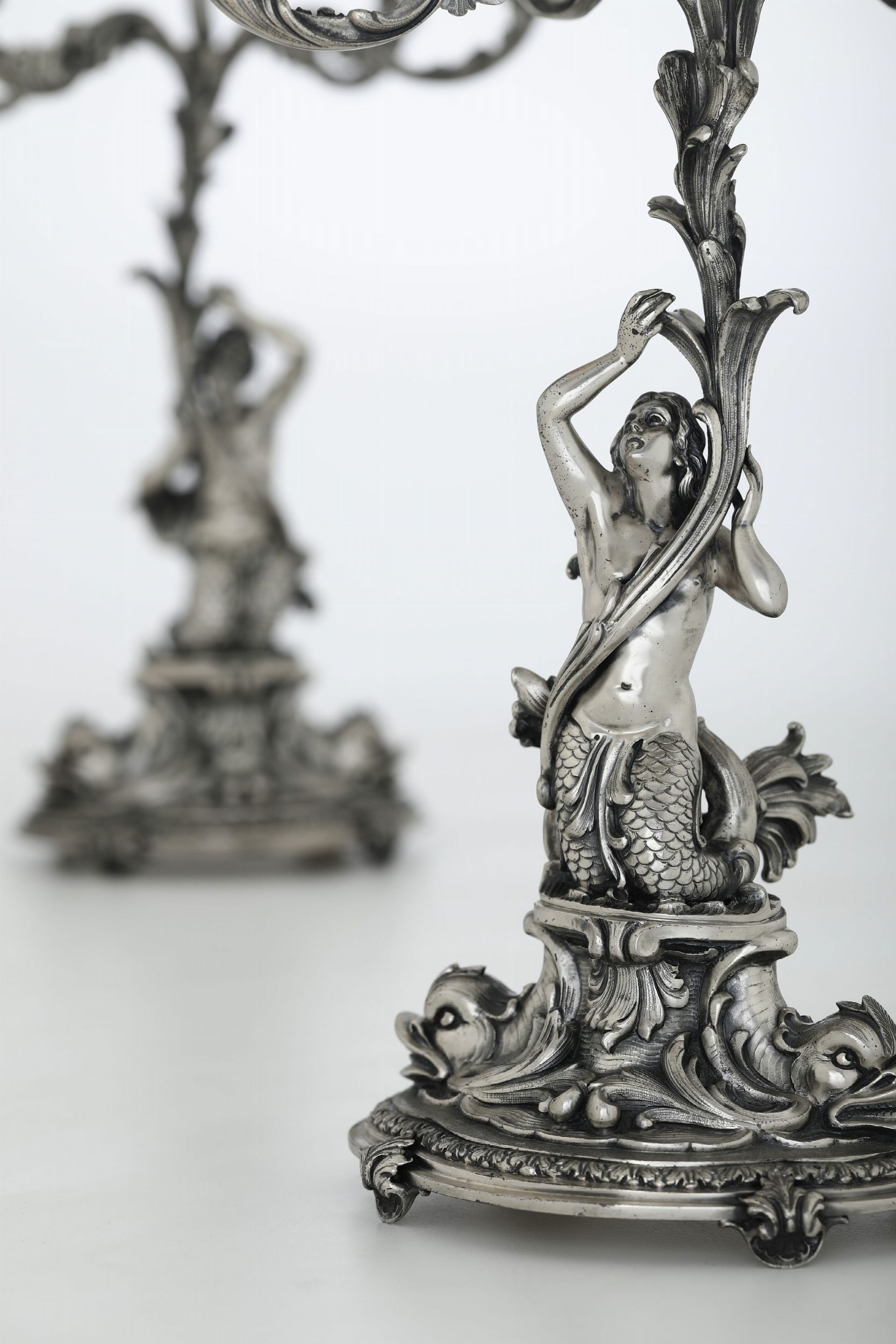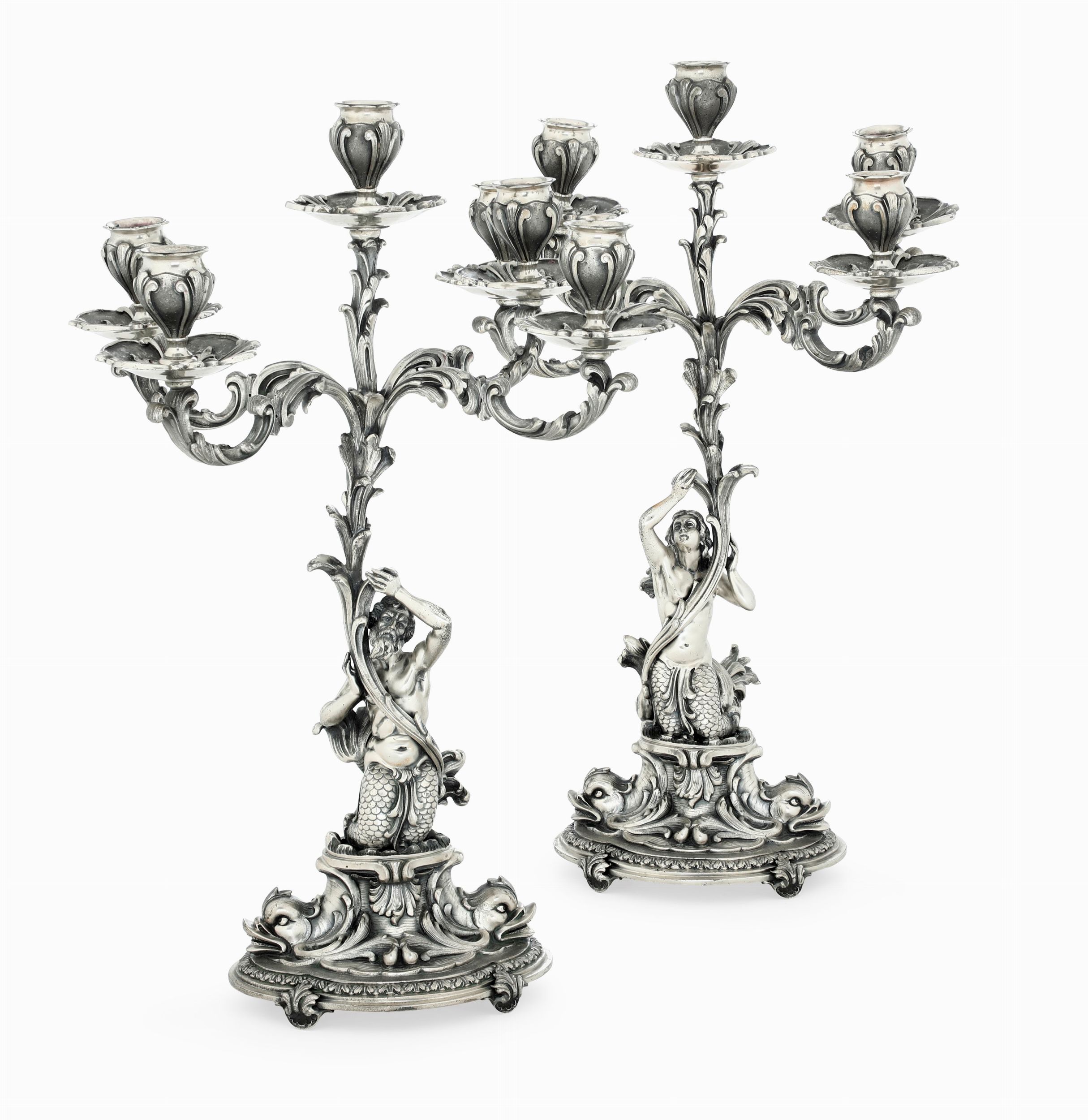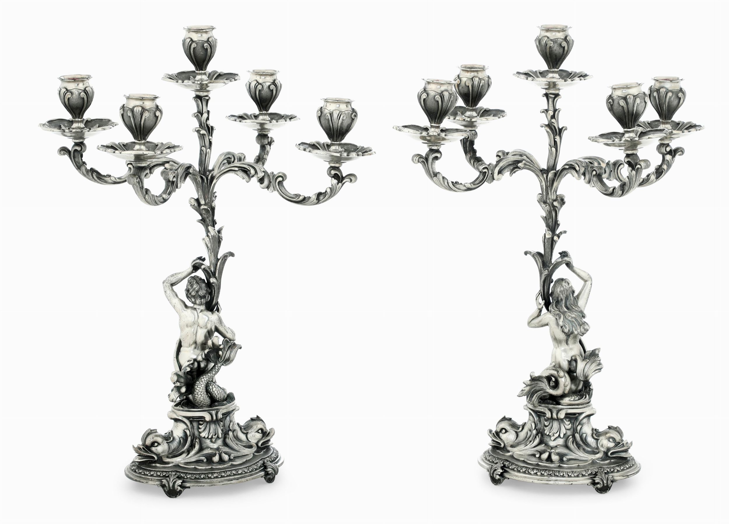 Coppia di candelabri a cinque fiamme. Argenteria artistica milanese del XX secolo. [..]