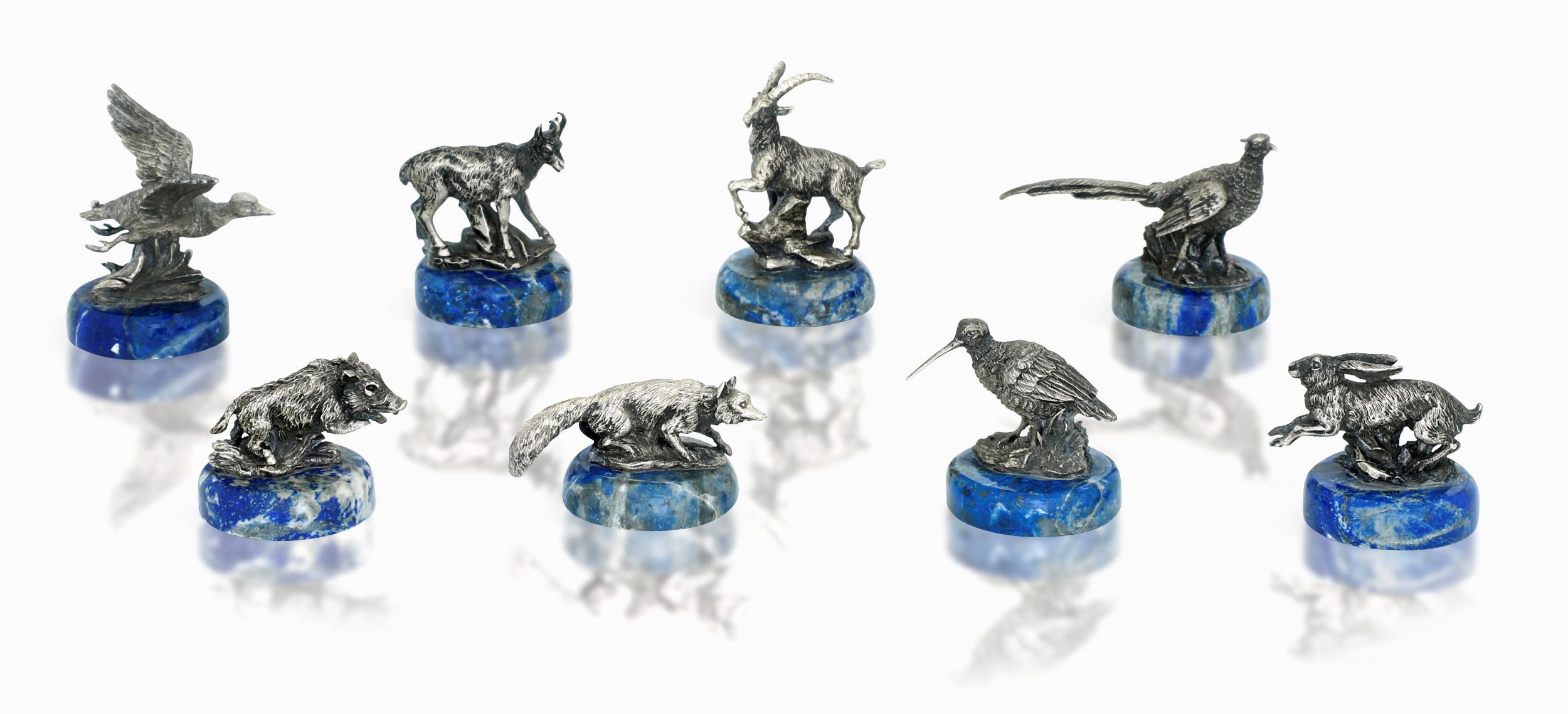 Otto segnaposto animalier. Argenteria italiana del XX secolo