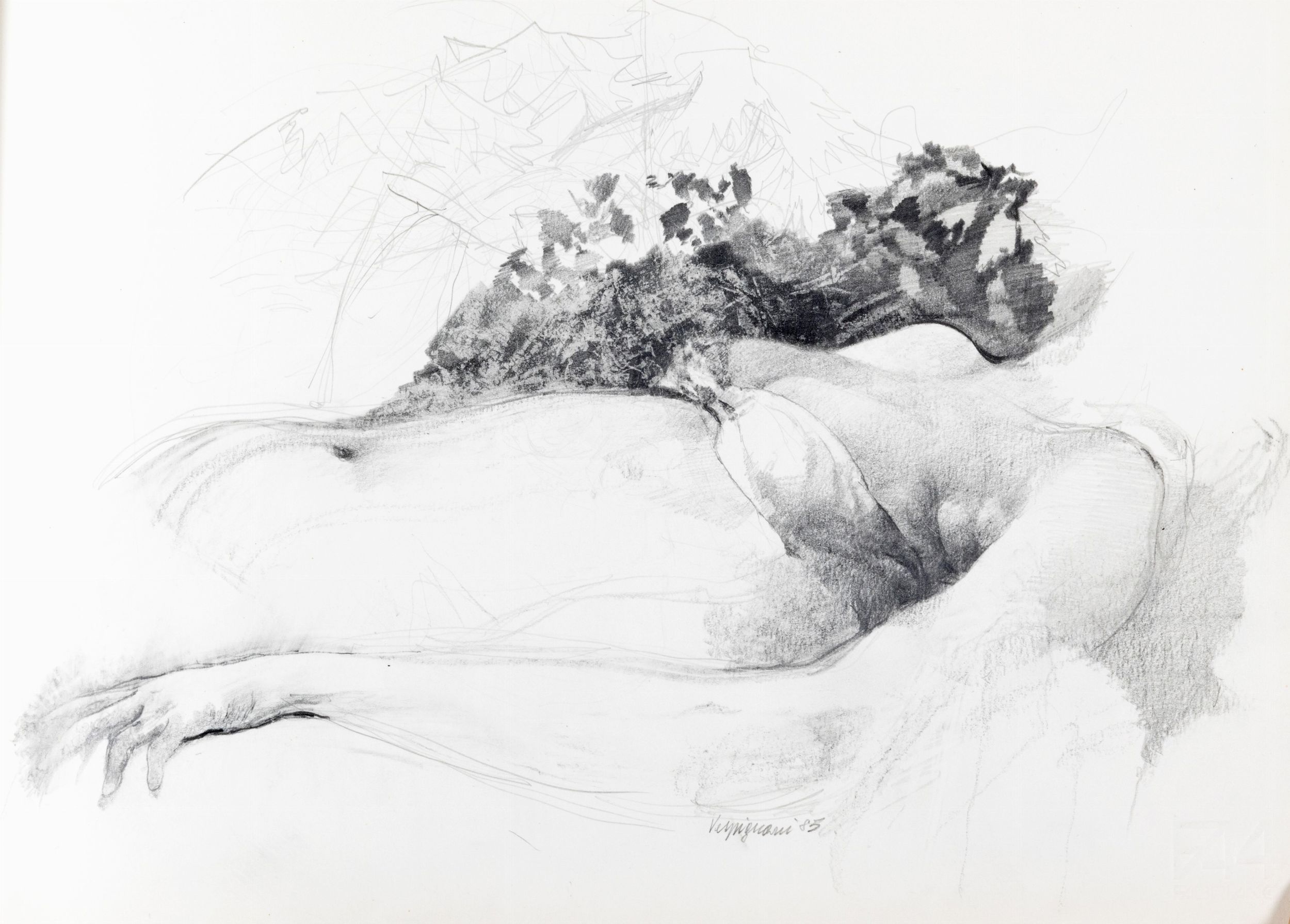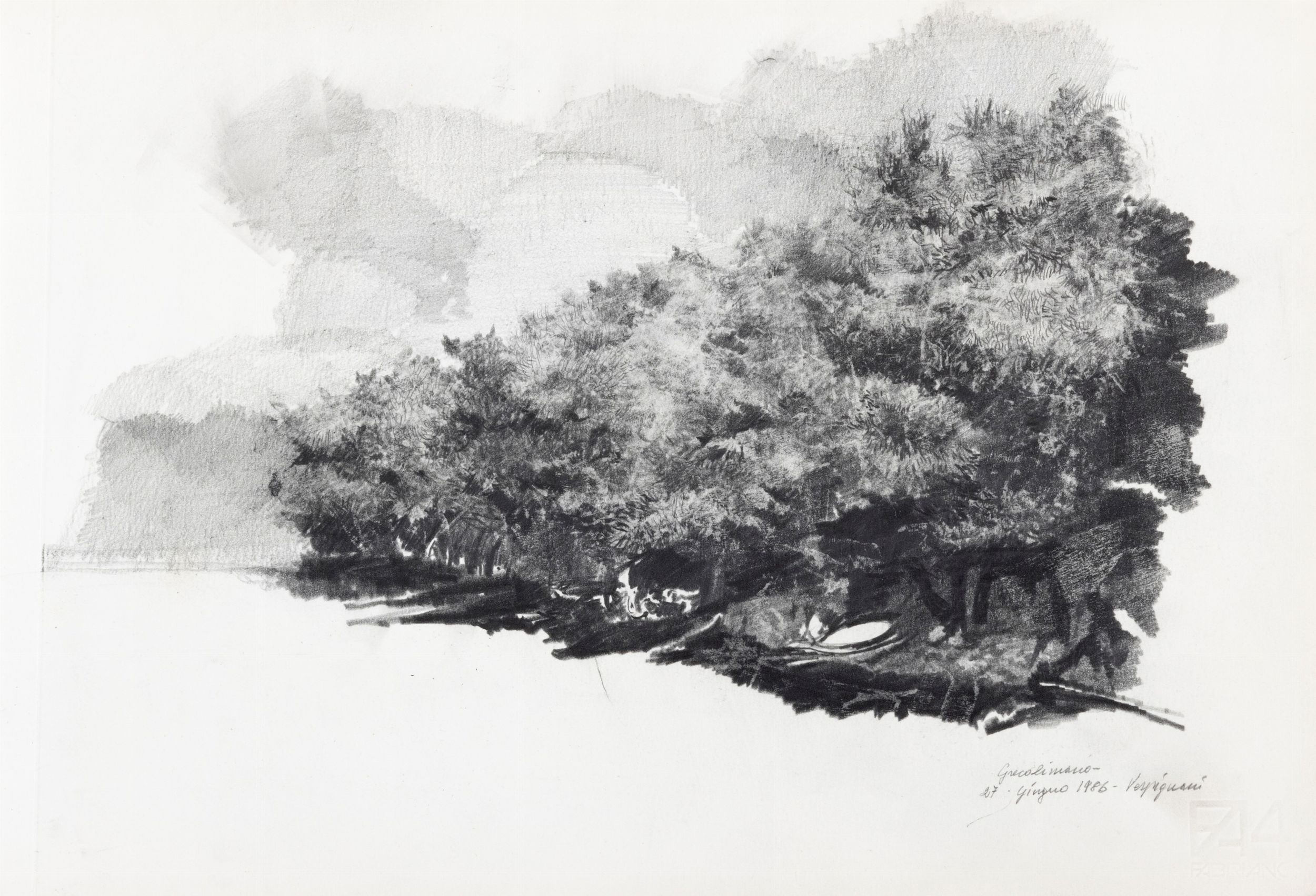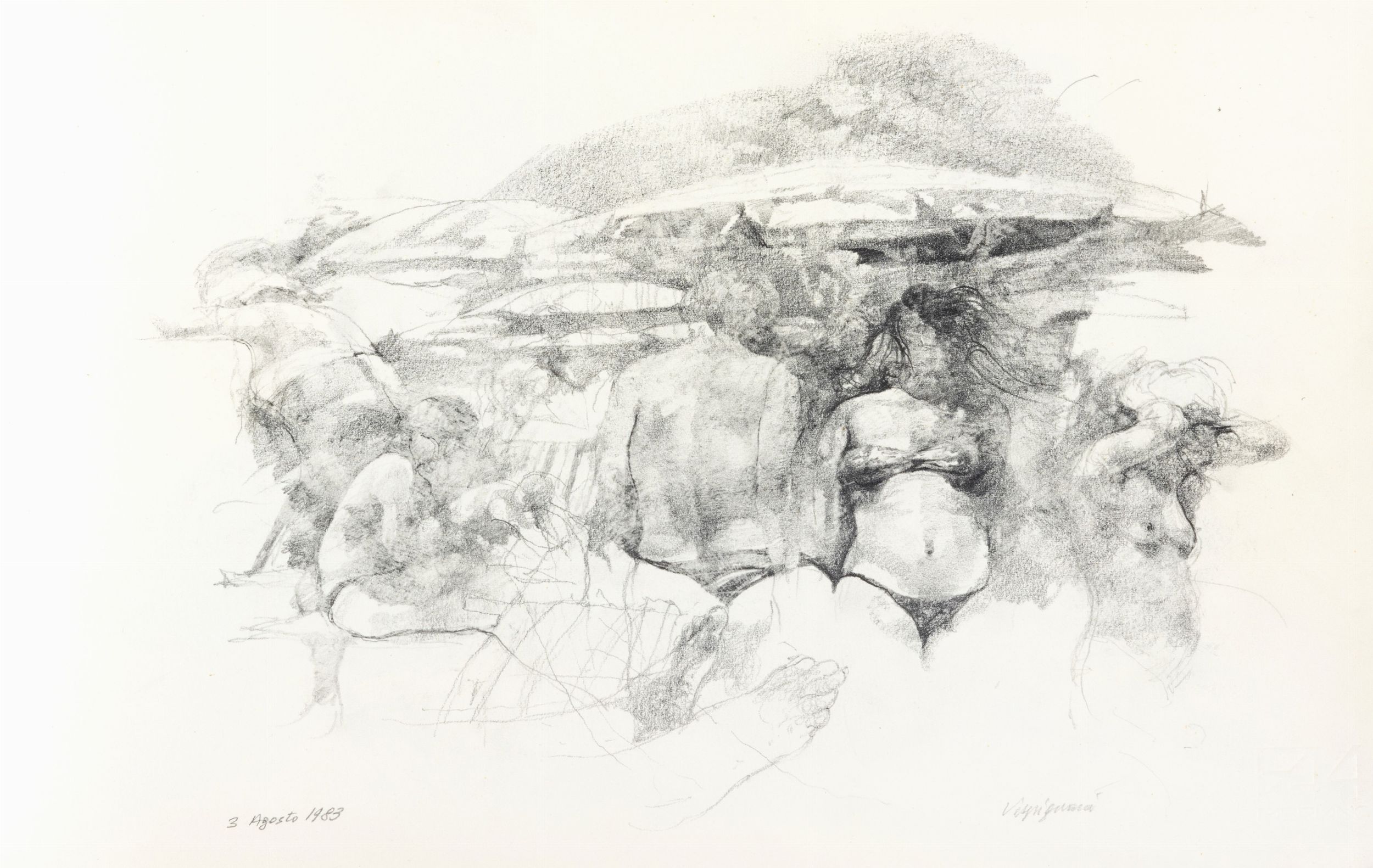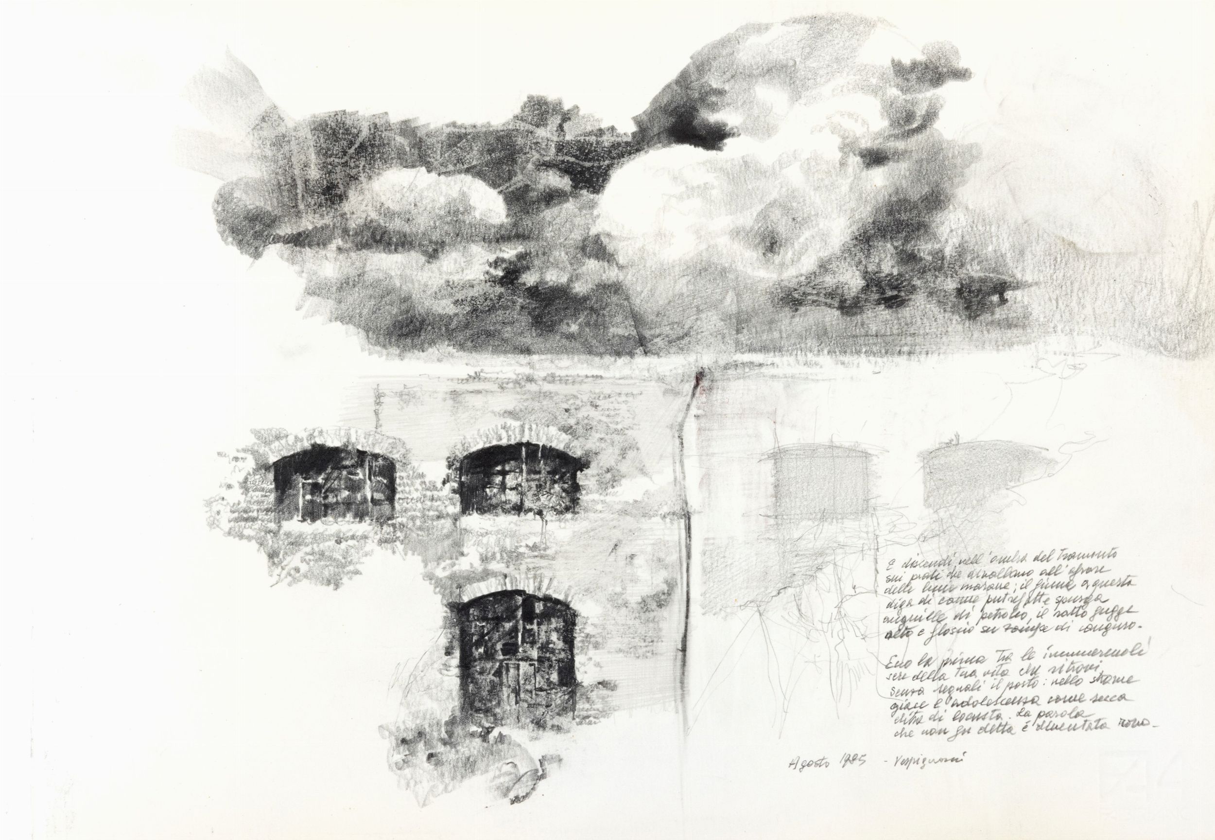 1981/'87 Contenente 46 disegni aventi soggetti diversi eseguiti tra il 1981 e il 1987 Alcuni firmati e datati Album con custodia in pelle beige e titolo impresso in oro: Le ore per Rossana