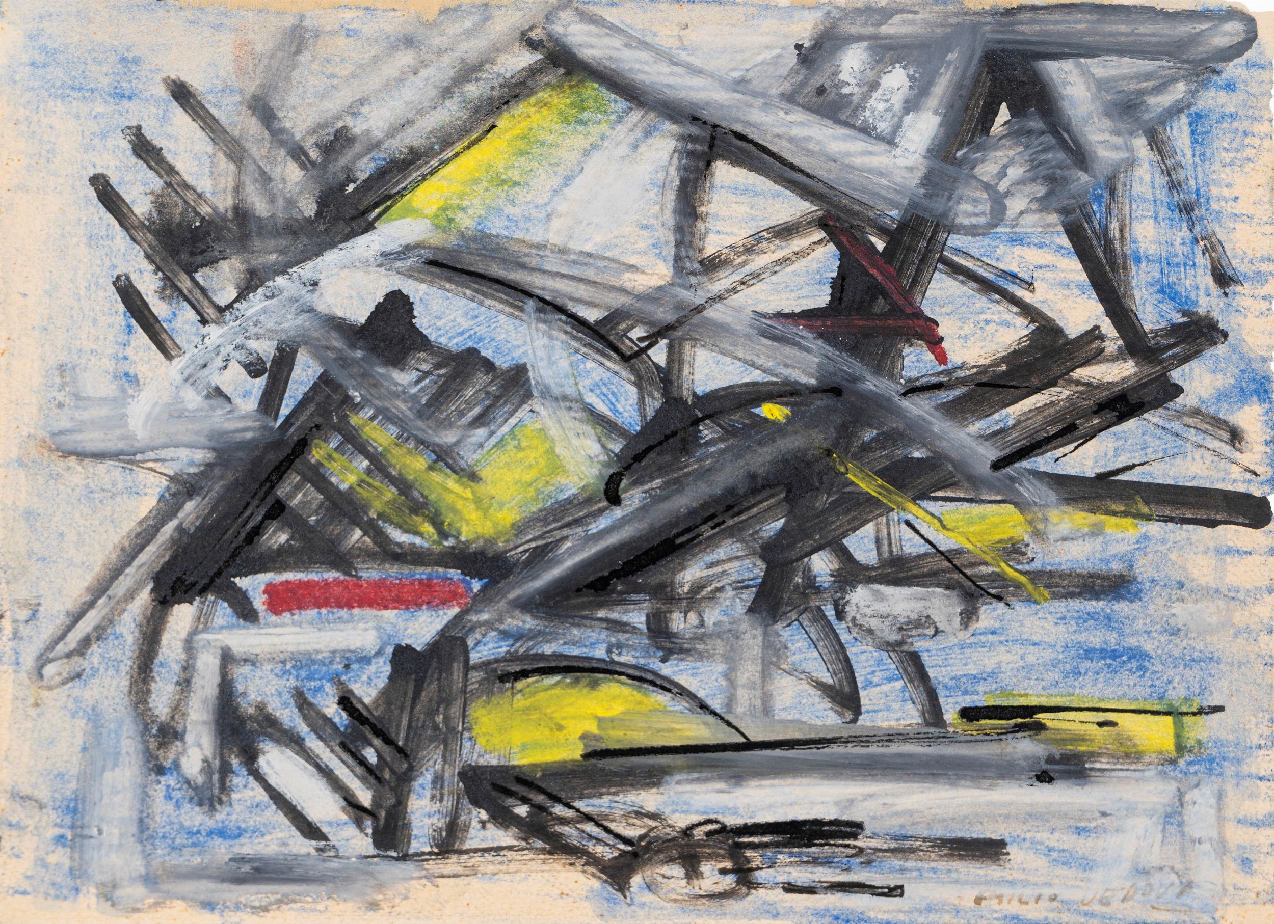 1951 Firmato in basso a destra: Emilio Vedova Firmato e datato al verso: Emilio Vedova, Studio, Paesaggio a Val Gardena, 1951