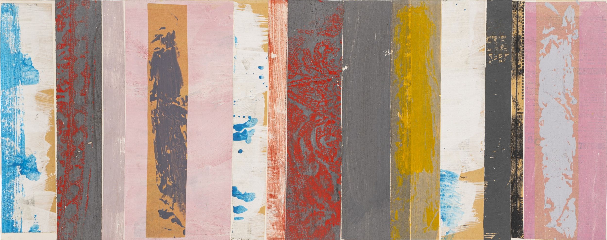 tecnica mista e collage su cartone, cm 29 x 73