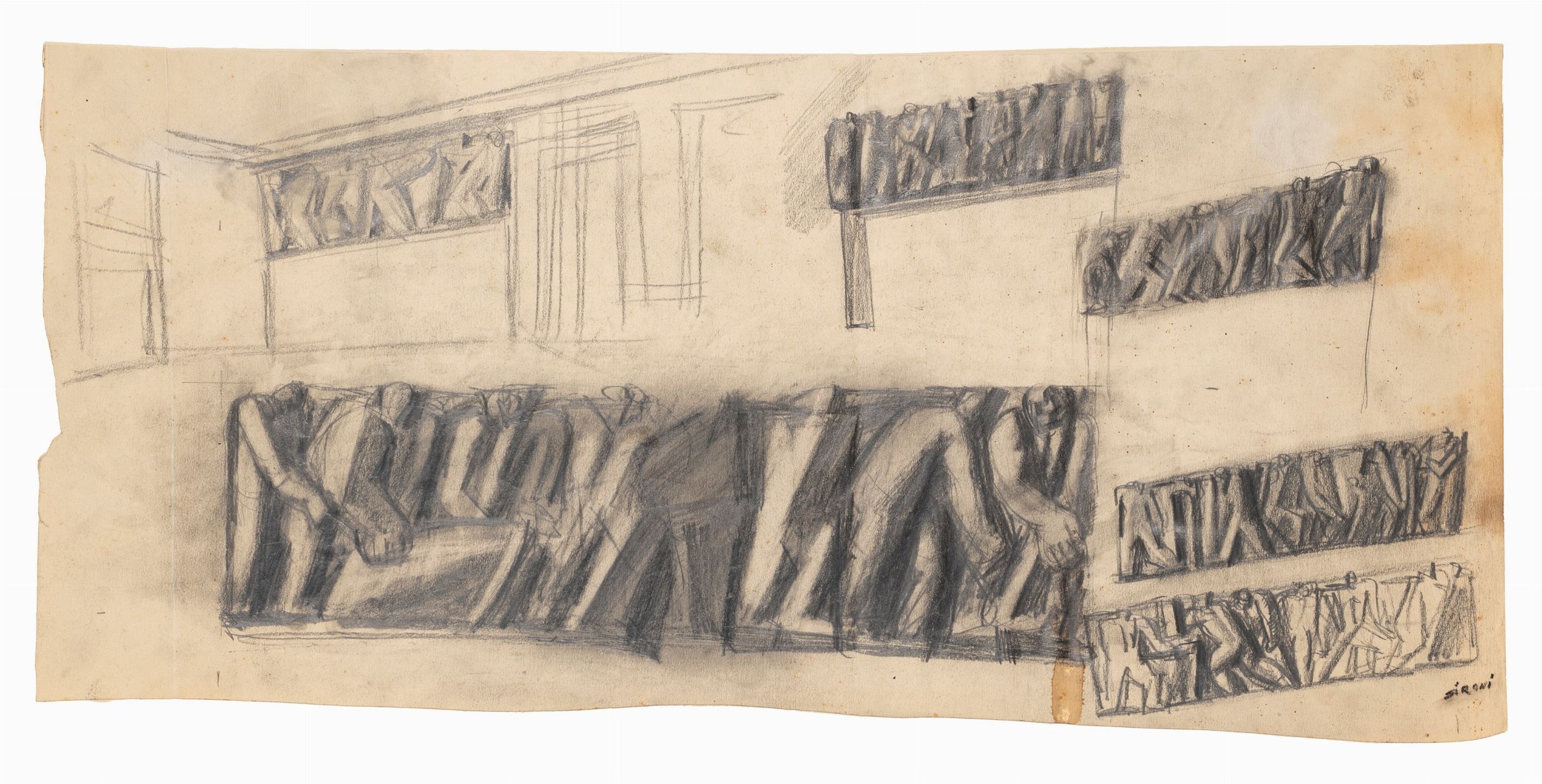 matita e matita grassa su carta, cm 35,7 x 75,3