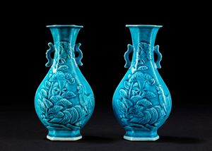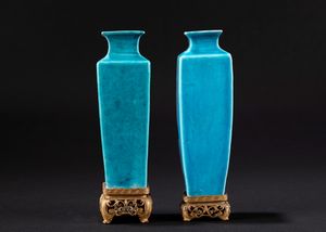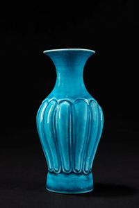 h cm 12,1 Cina, periodo Kangxi (1661-1722) a forma di colonna di balaustra costolata 绿松石釉瓷小花瓶 [..]