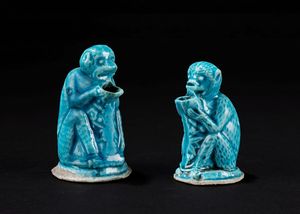 h max cm 7 Cina, periodo Kangxi (1661-1722) a guisa di scimmie sedute su una roccia mentre reggono una noce di [..]