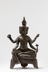 h cm 48 Tailandia, XIX secolo assisa su un trono con le gambe in  lalitasana, le quattro braccia reggono [..]