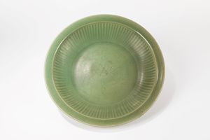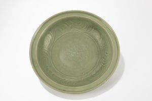d cm 45,7 Cina, dinastia Ming (1368-1644) inciso al centro e sulla tesa con motivi fogliacei  龙泉青釉大盘,中国,明朝 [..]