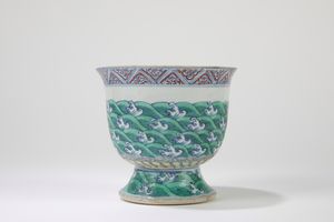 h cm 11,4 Cina, inizio secolo XVIII decorata sul corpo con onde stilizzate e sul bordo con motivi a grappoli in [..]