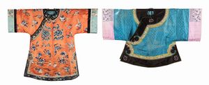 h cm 90 x l tot cm 155; h cm 110 x l tot cm 134 Cina, fine dinastia Qing (difetti e strappi) 刺绣ä¸ç»¸è¡£è£ [..]