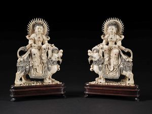 h cm 19 x l cm 12,5 x p cm 5; g. 648,7 Cina, inizio secolo XX siedono su due kirin elaboratamente intagliati e [..]