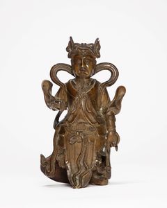 h cm 22,1 Cina, dinastia Ming (1368-1644) in posizione assisa, elegantemente vestito con un abito adornato da [..]