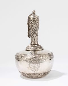 g. 1594 India, fine secolo XIX di forma a bulbo con lungo collo sbalzato, centrato da stemma 'Sarwan State' 银製水器 [..]