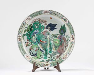 d cm 41 Cina, periodo Kangxi (1661-1722) i lati poco profondi e arrotondati si elevano da un piede corto e affusolato [..]