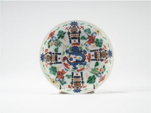 d cm 13,5 Cina, secolo XIX decorato al centro con un drago a cinque artigli, sul bordo con accoli alternati ad [..]