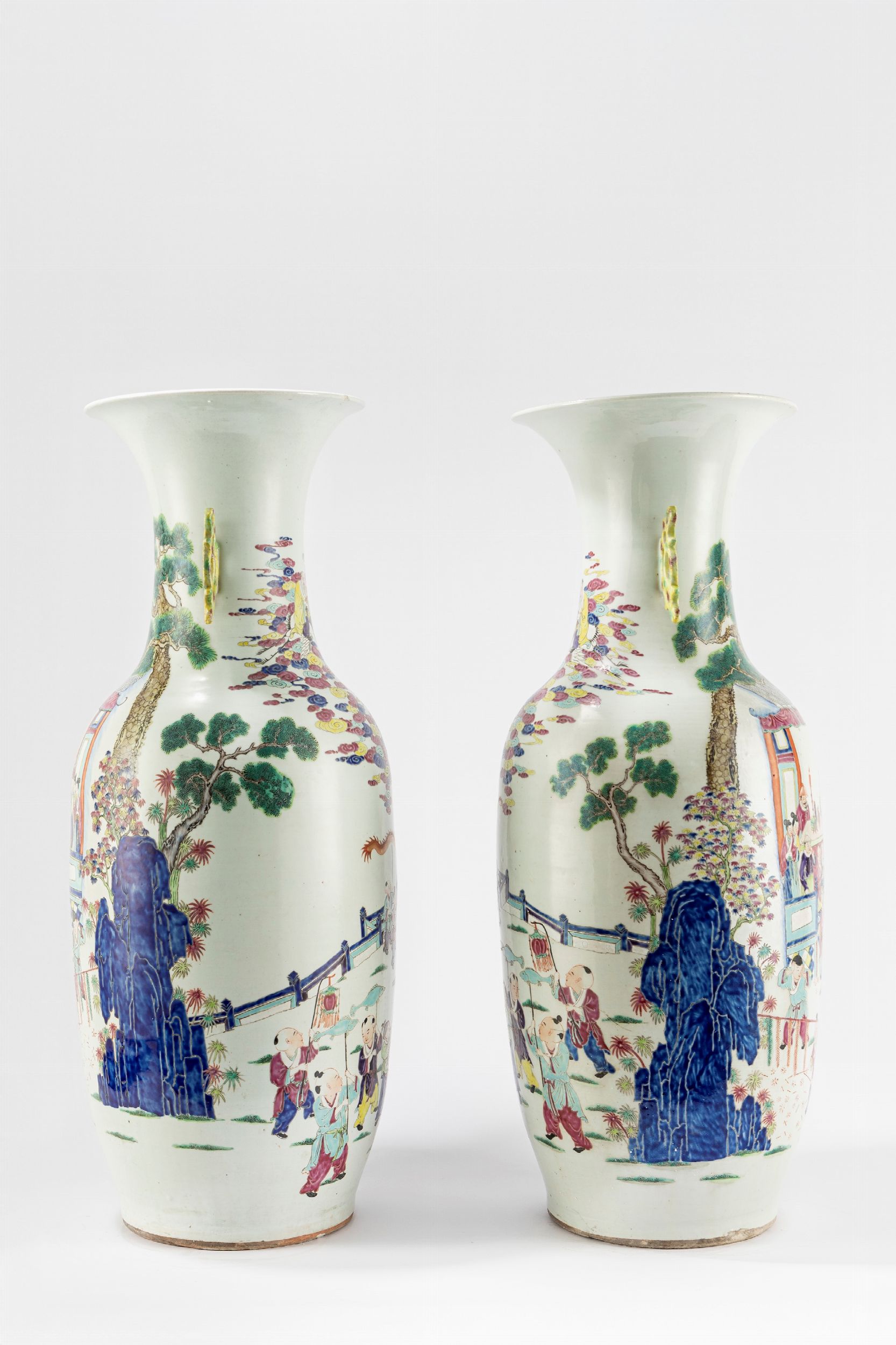 Coppia di grandi vasi in porcellana famiglia Rosa Hundred Boys