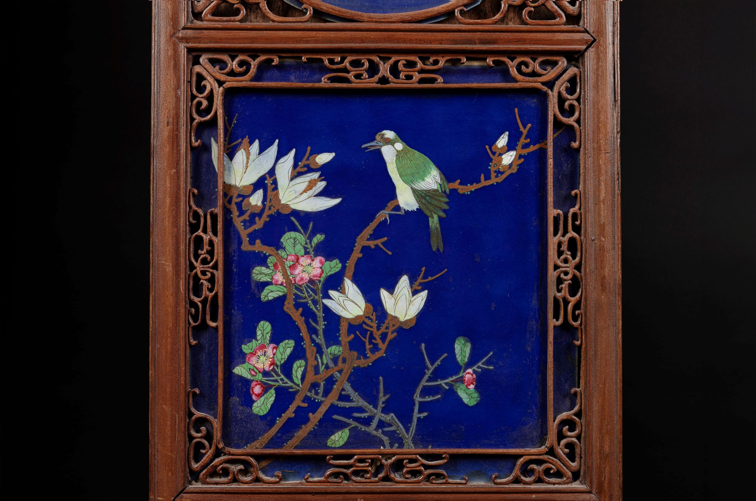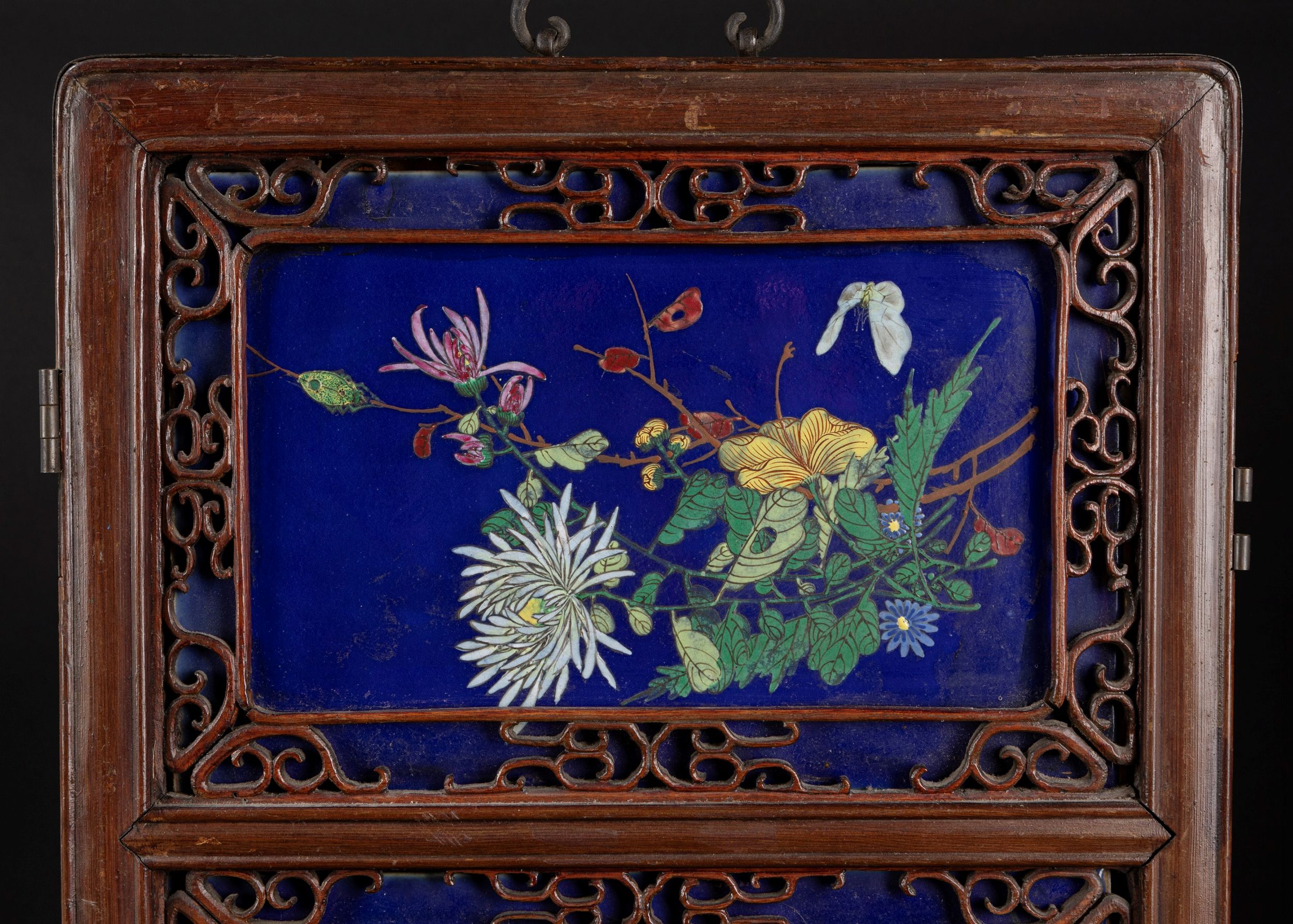 Coppia di Panneli in legno con placche in porcellana Qianjiang