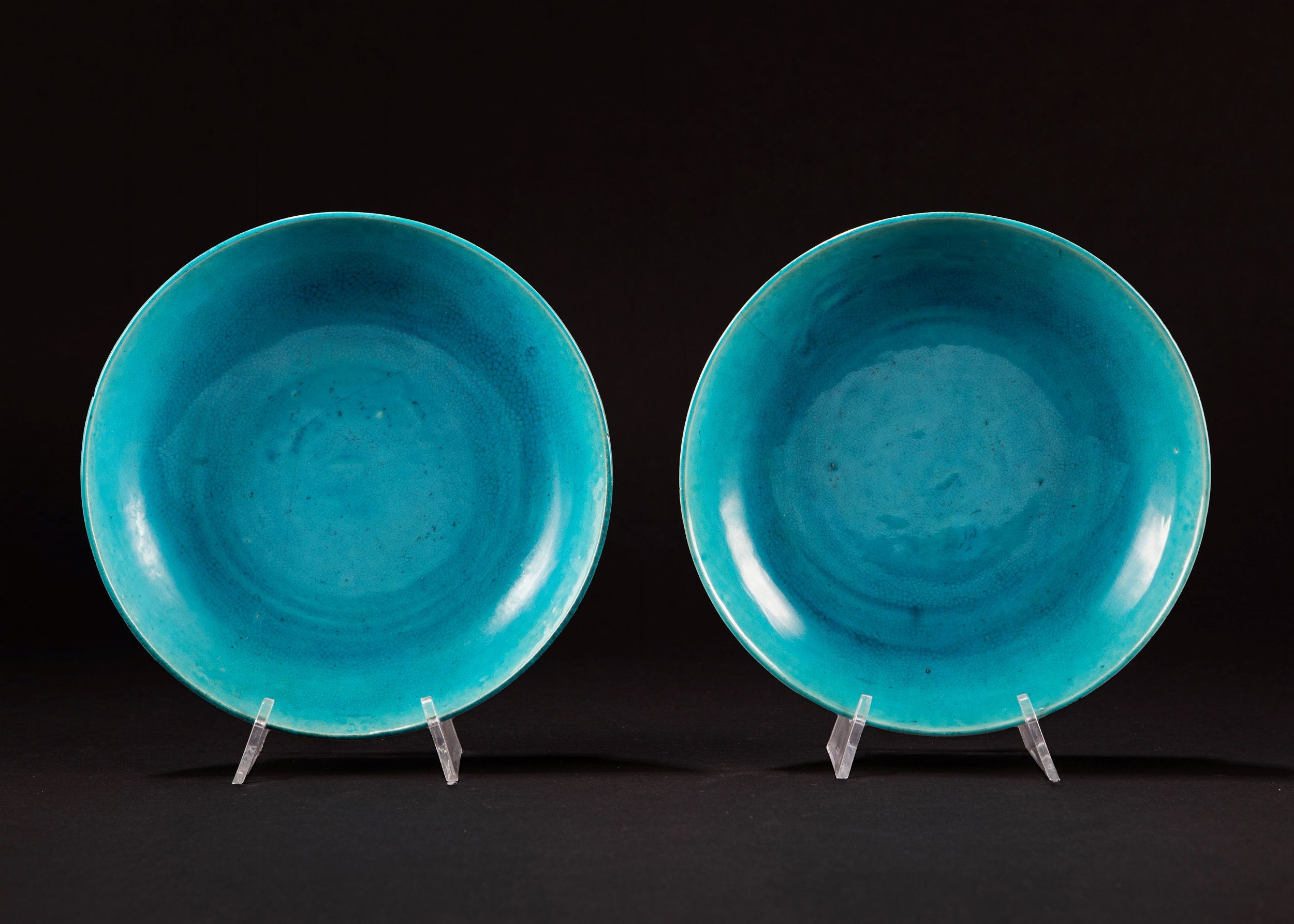 Cina, periodo Kangxi (1661-1722) (difetti) 绿松石釉瓷盘两件,中国,康熙时期(1661-1722)