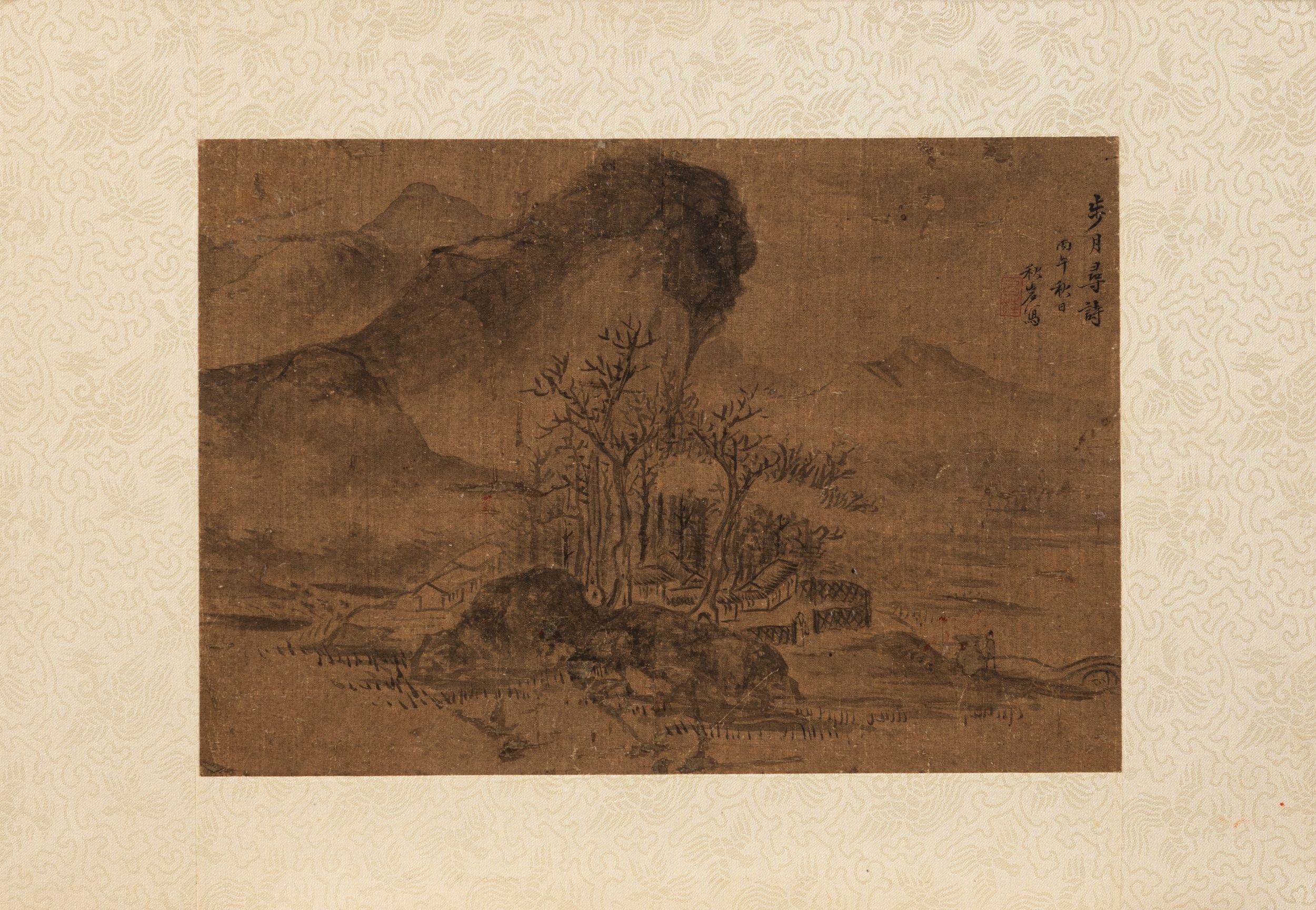 Cina, secolo XX raffiguranti motivi floreali e paesaggio con pagode. 山水丝画四幅 (其中扇形两幅),中国,二十世纪