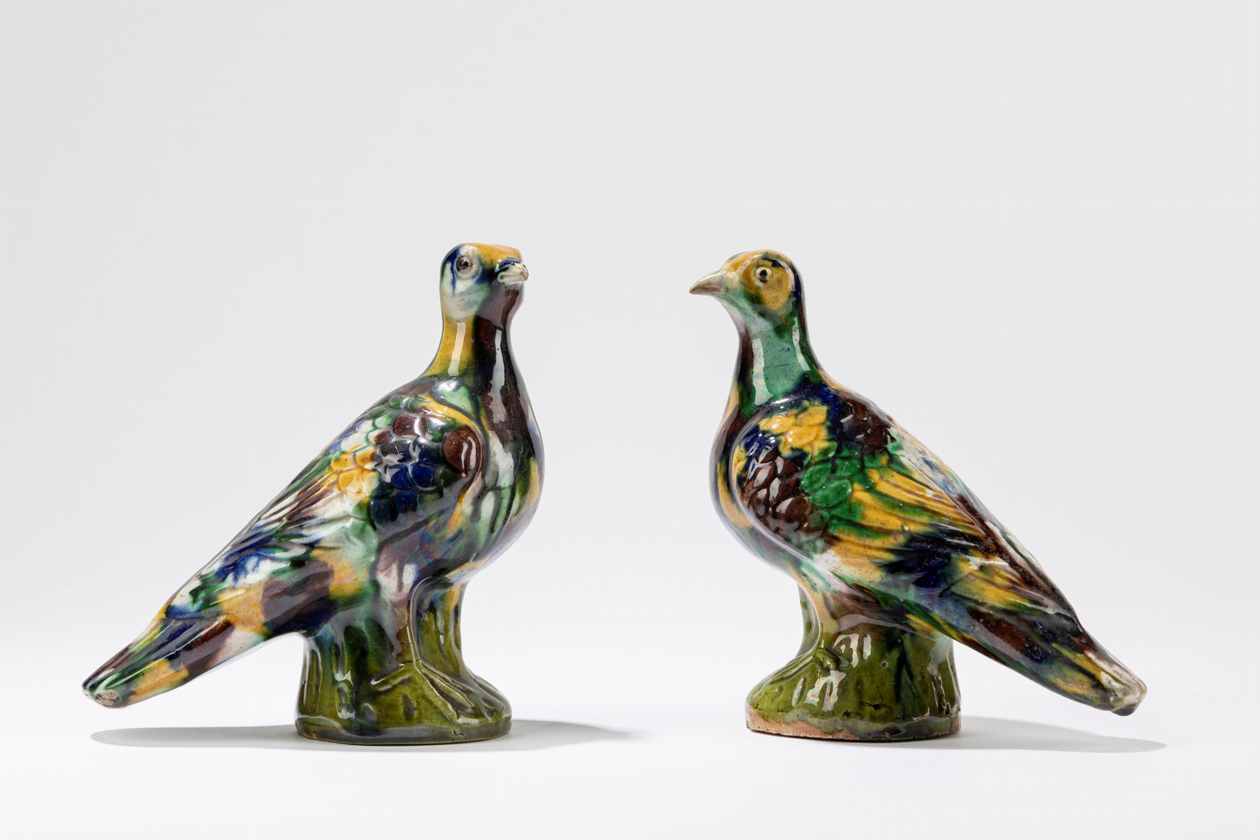Cina, secolo XVIII 绿黄釉陶瓷鸟一对,中国,十八世纪