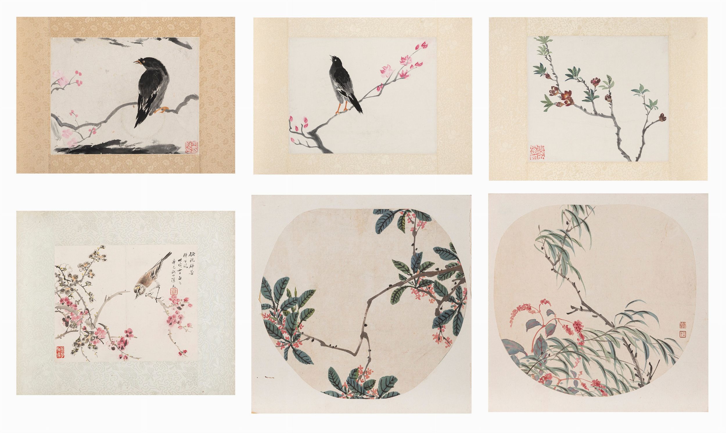 Cina, secolo XIX/XX 花鸟水墨画六幅,中国,十九-二十世纪
