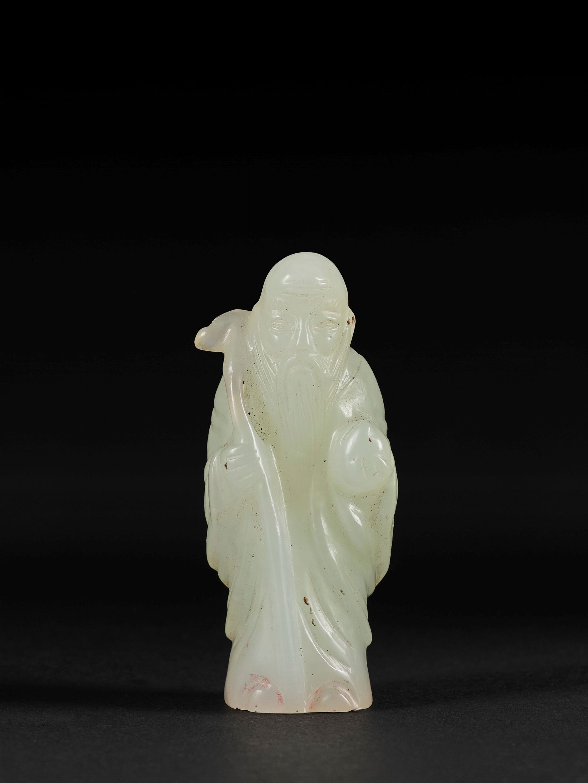 Cina, fine dinastia Qing a guisa di Shoulao con bastone e pesca della longevità 玉玺,中国,清朝晚期