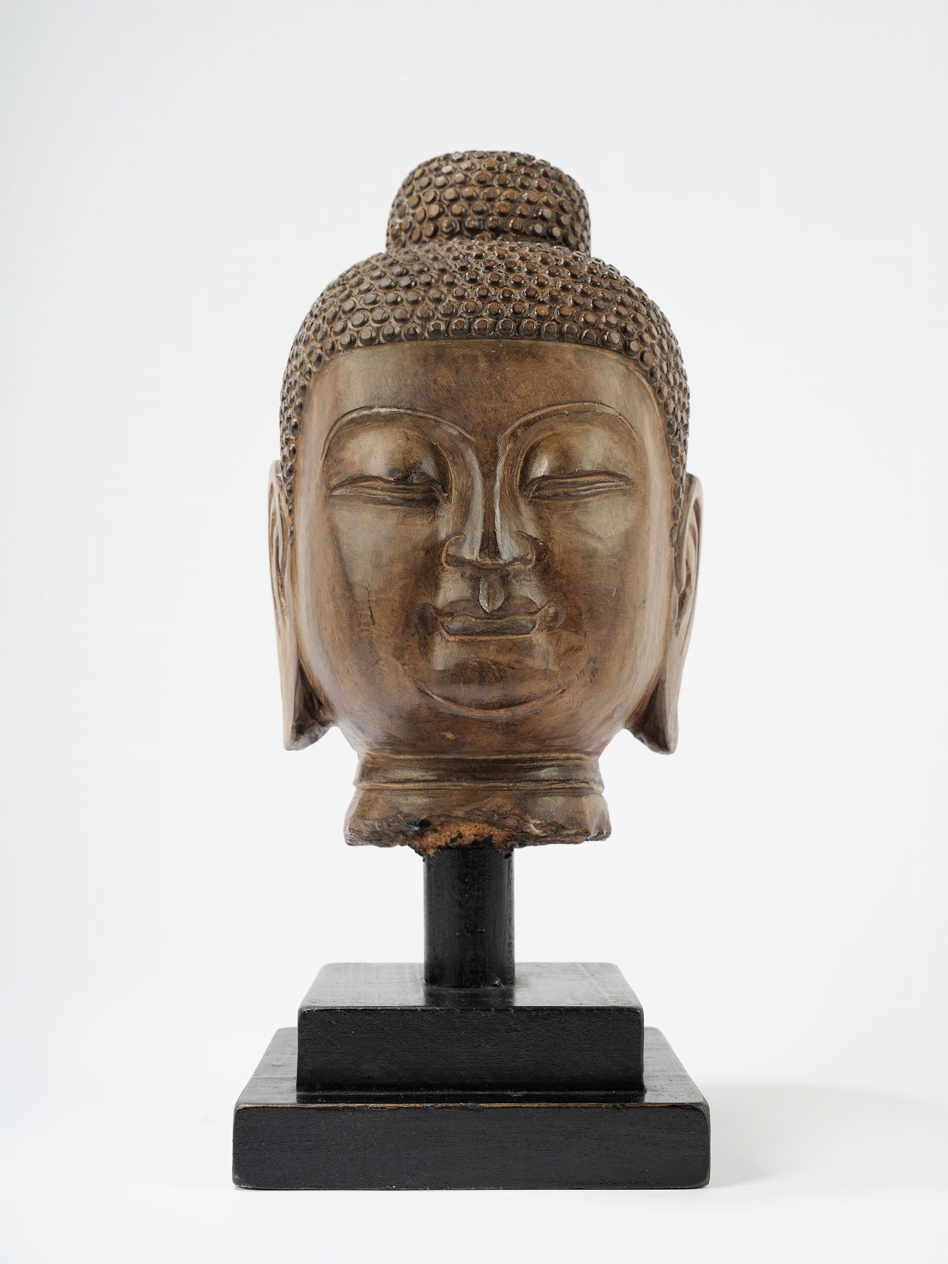 Thailandia, secolo XIX con gli occhi rivolti verso il basso in meditazione (con supporto) 泰国青铜佛头,泰国,十九世纪