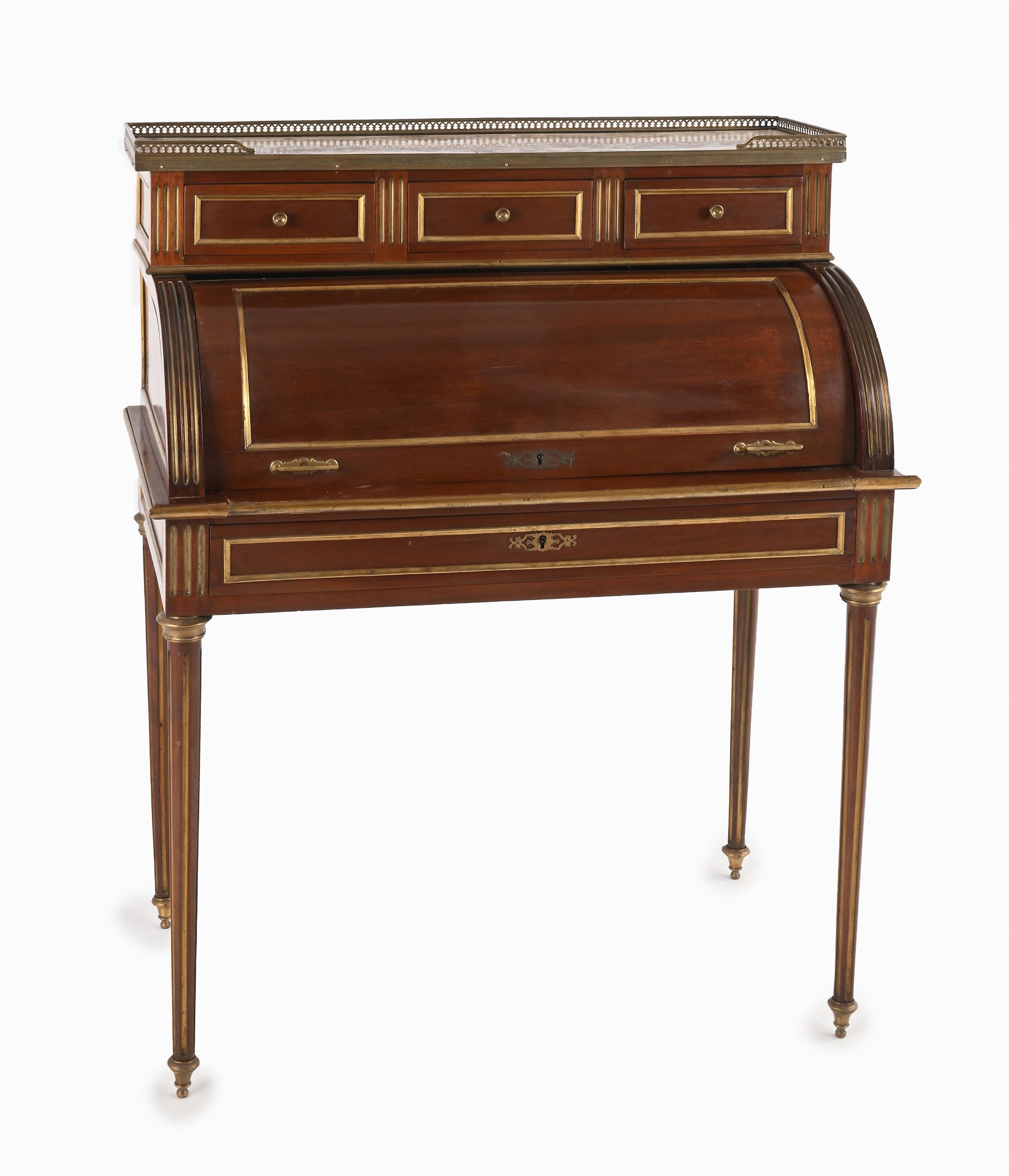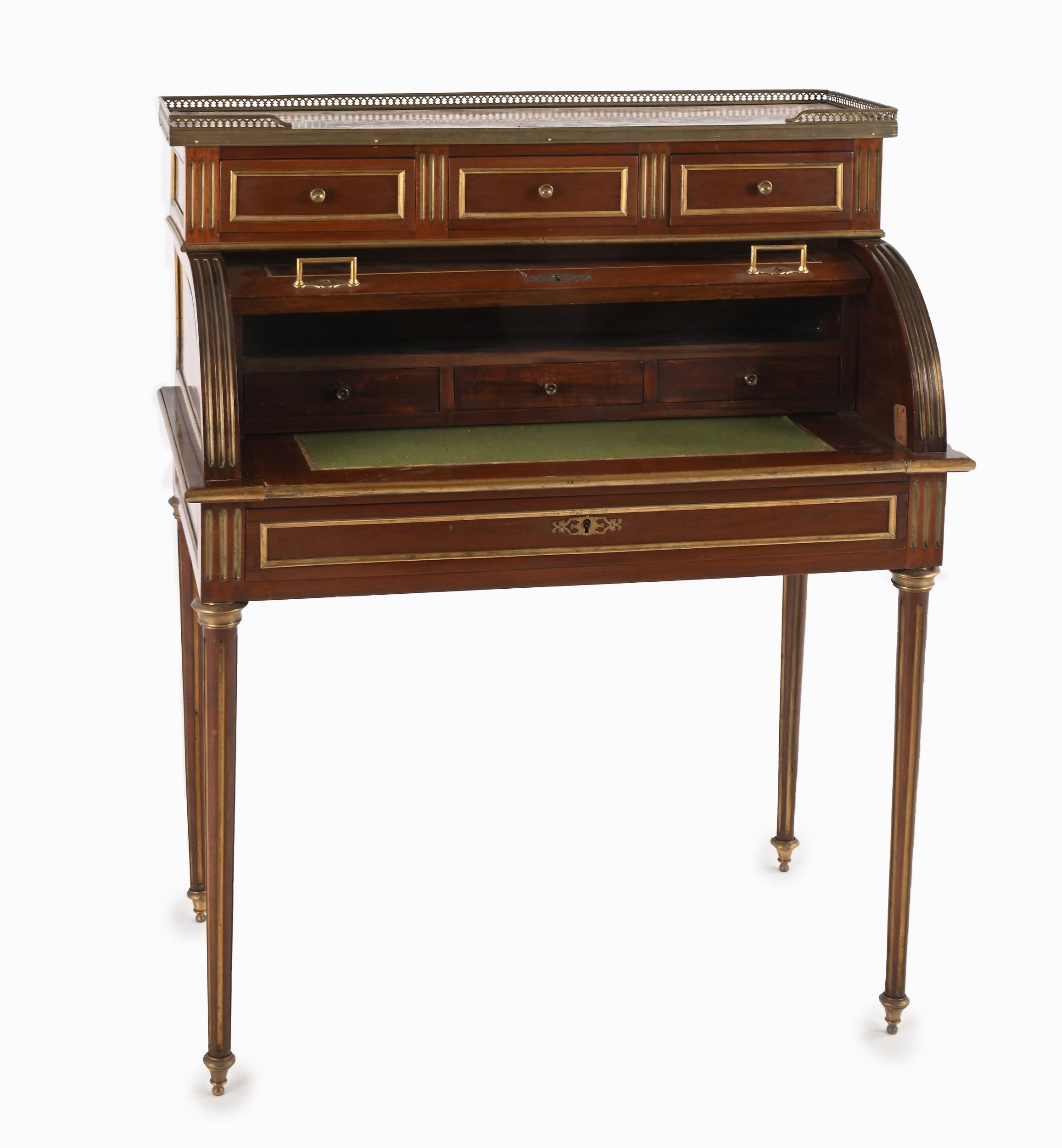 Bureau cylindre da parete in mogano, Francia, XIX secolo