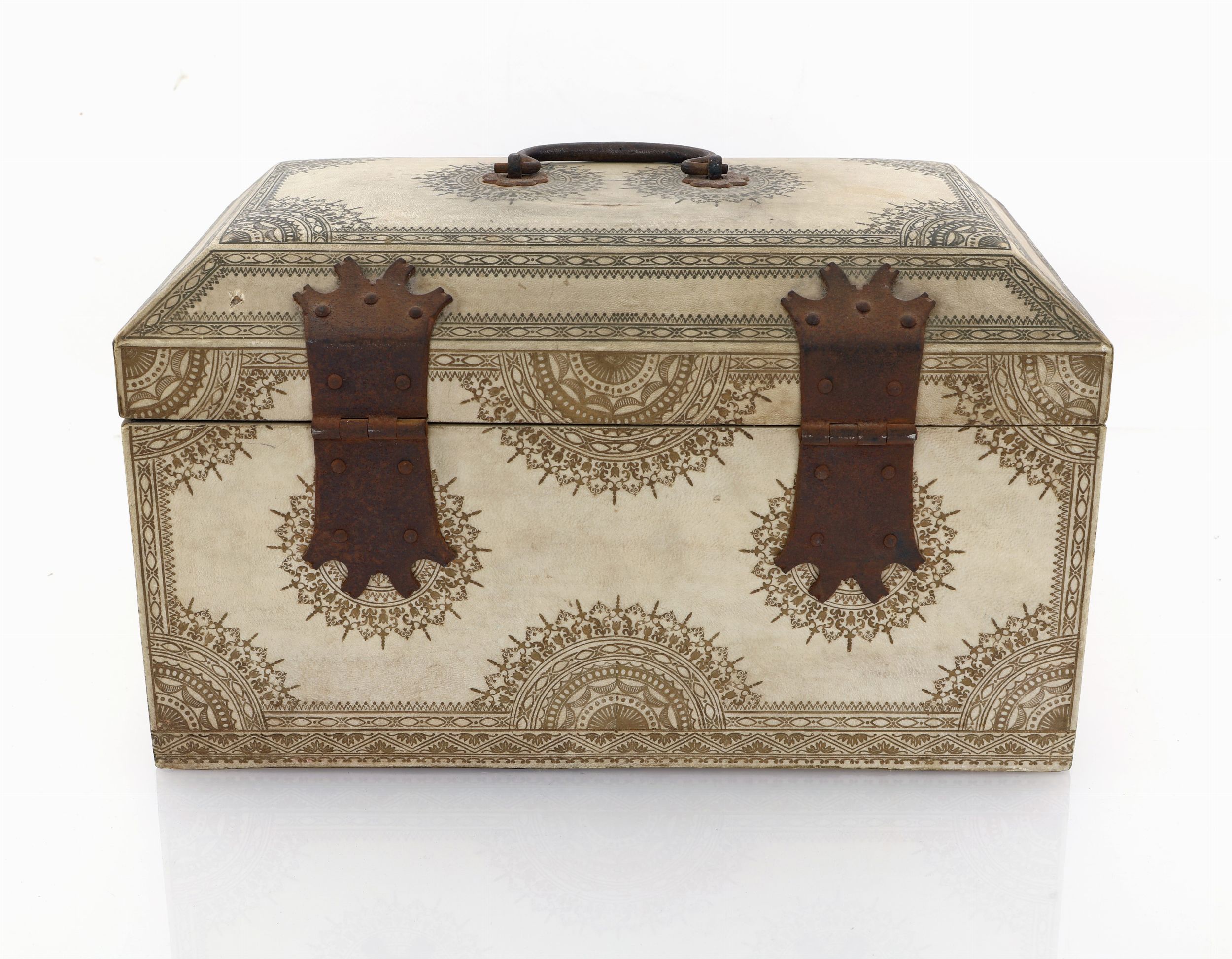 Cofanetto stile arabo normanno in legno rivestito in pergamena e cuoio, Maison Chalmette, [..]