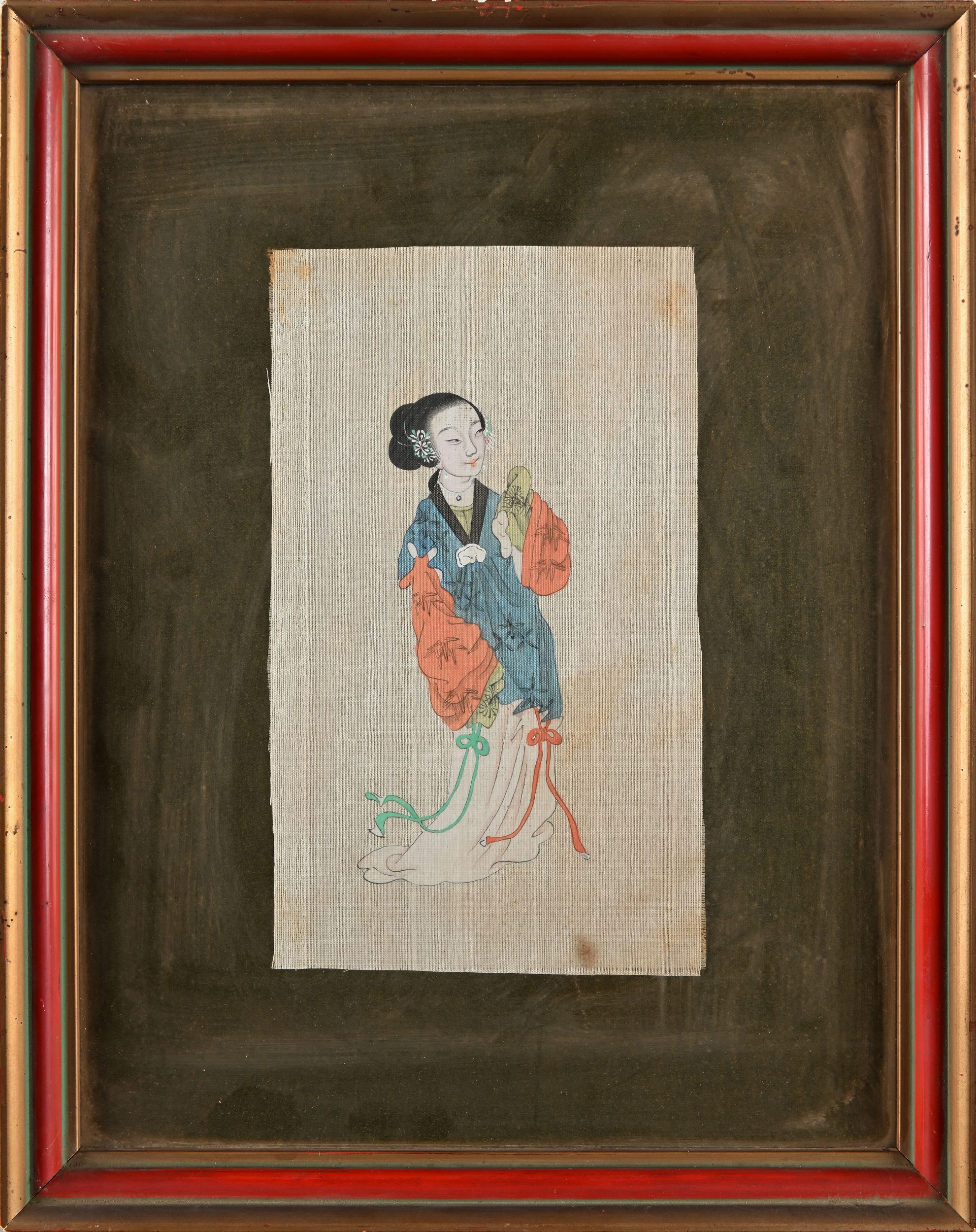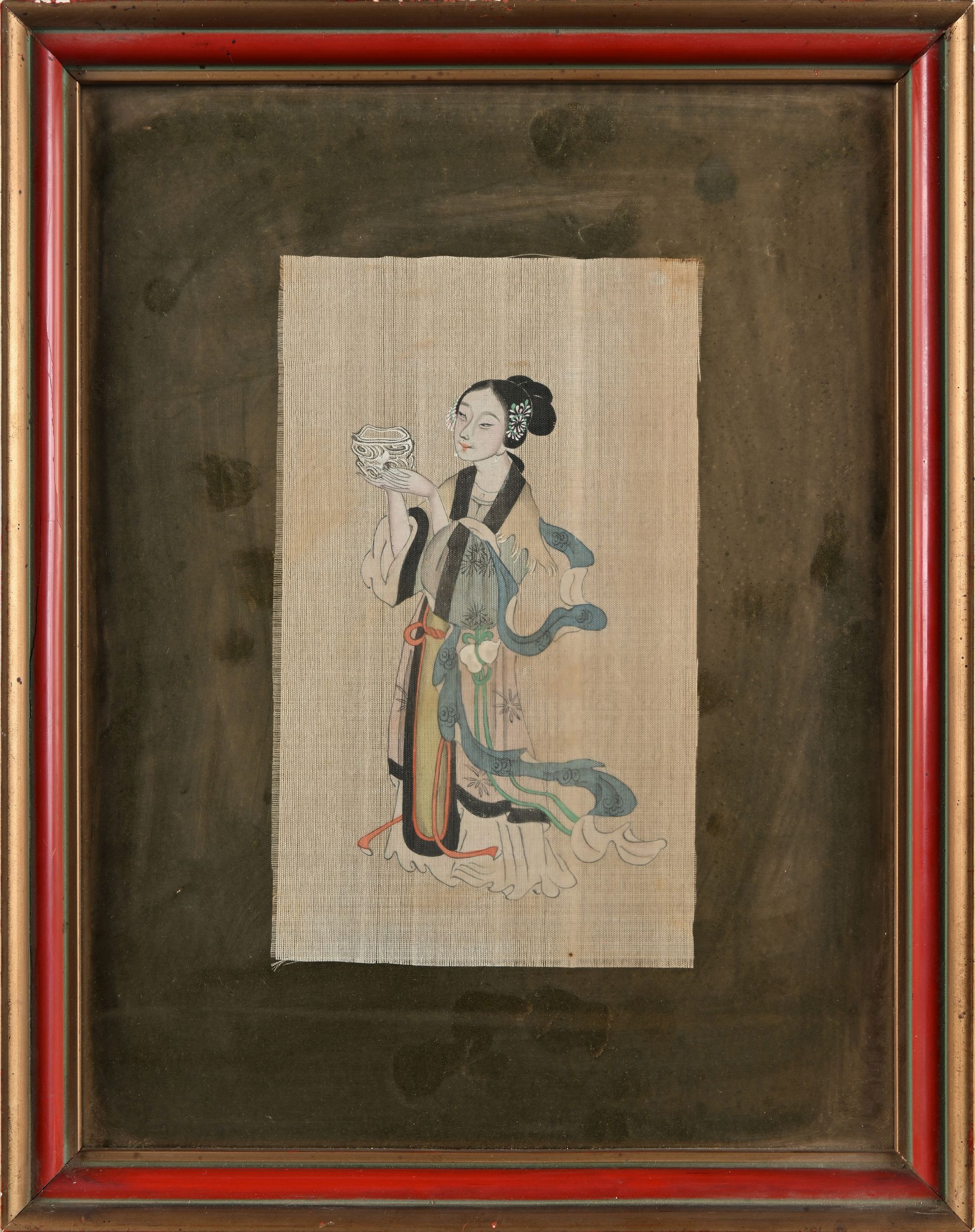 tempera su seta, cm 20x12 - in cornice cm 35x28 passe-partout dorato e cornice in legno dipinto. La dea Magu, dea della longevità è per la sua bellezza simbolo di salute e di guarigione del mondo che lei stessa protegge ed è considerata la custode della vitalità in tutta l’Asia orientale, non solo per i mortali ma anche nei cicli naturali della terra.
