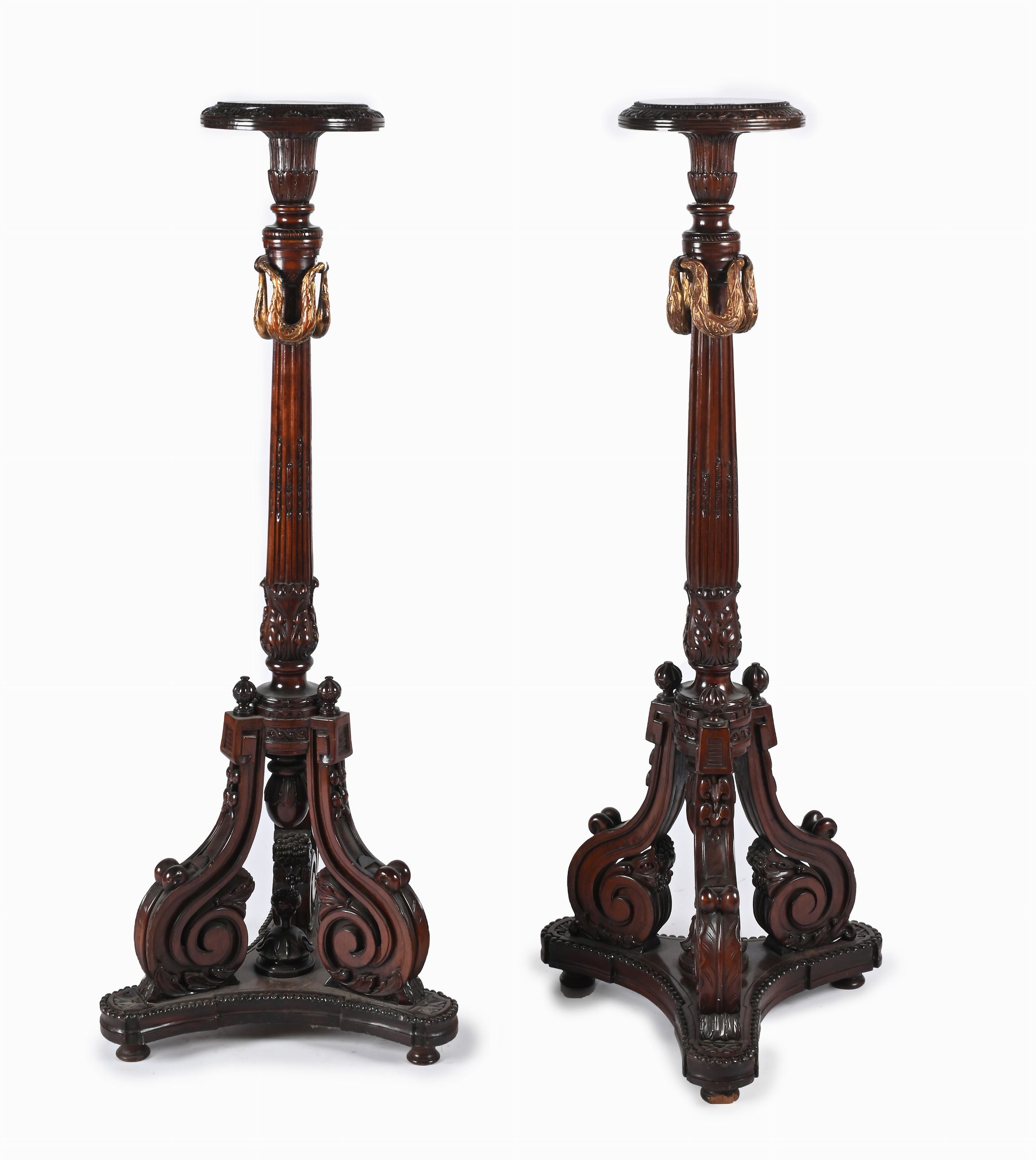 Coppia di guéridon porta vaso in legno, Inghilterra