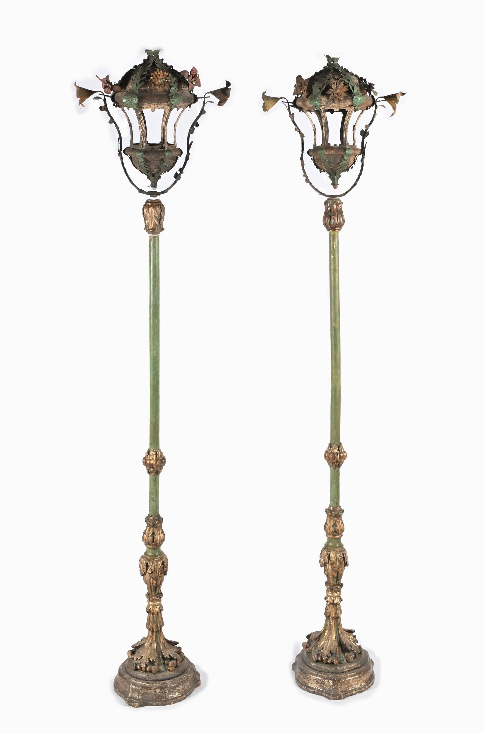 Coppia di lanterne in tolla dipinta e legno laccato, Venezia, XVIII/XIX secolo
