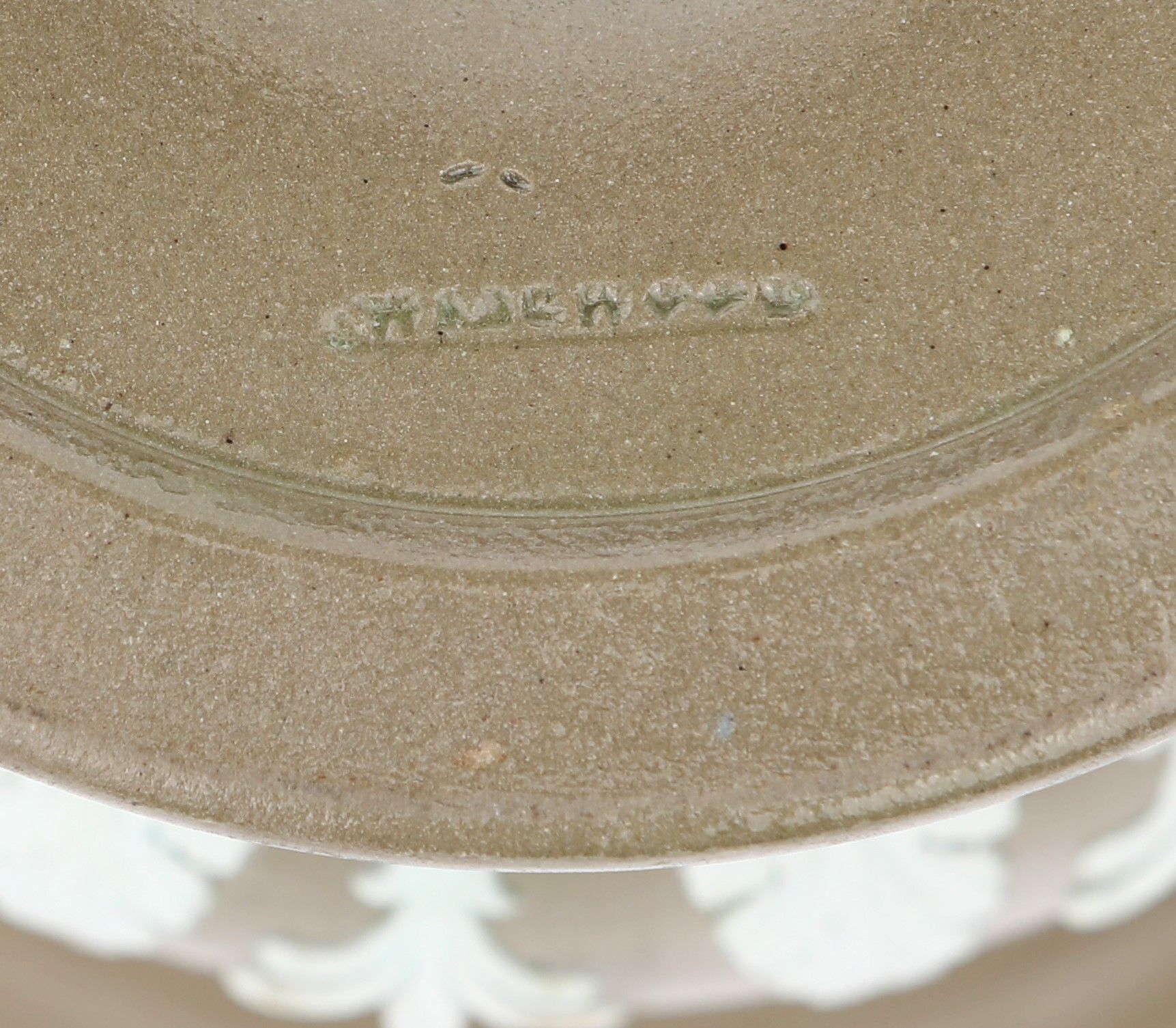 decorati da figure e lunghe foglie alternate a motivi neoclassici bianchi su fondo color fango. Marchio incusso sotto la base