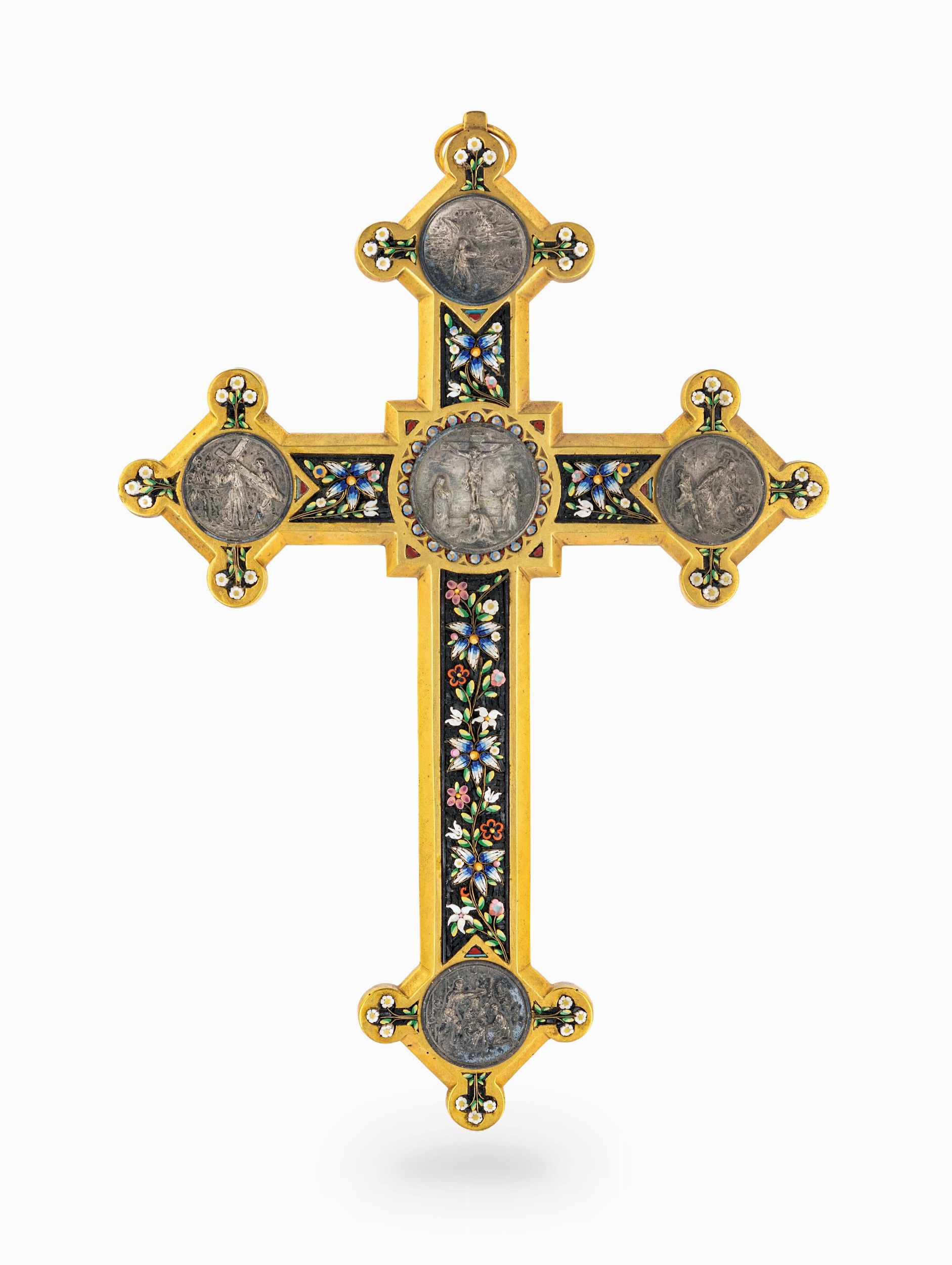 Croce in bronzo dorato con inserti a mosaico, inizi del XX secolo
