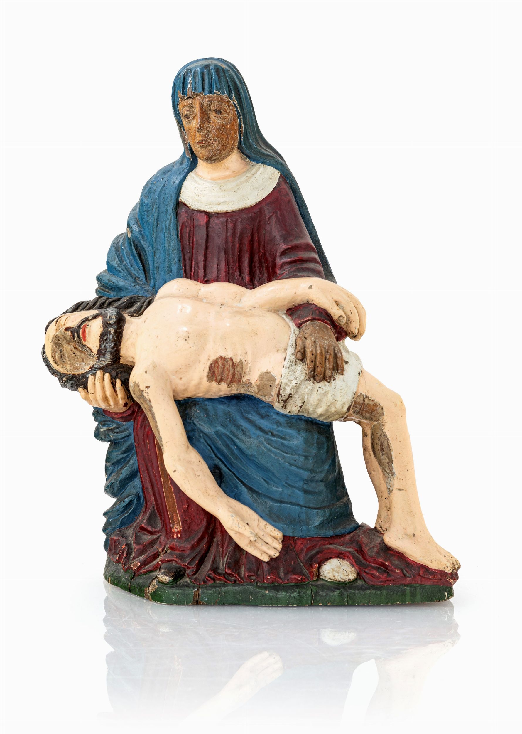 Scultura in legno laccato raffigurante Pietà, Spagna o Italia XVII secolo