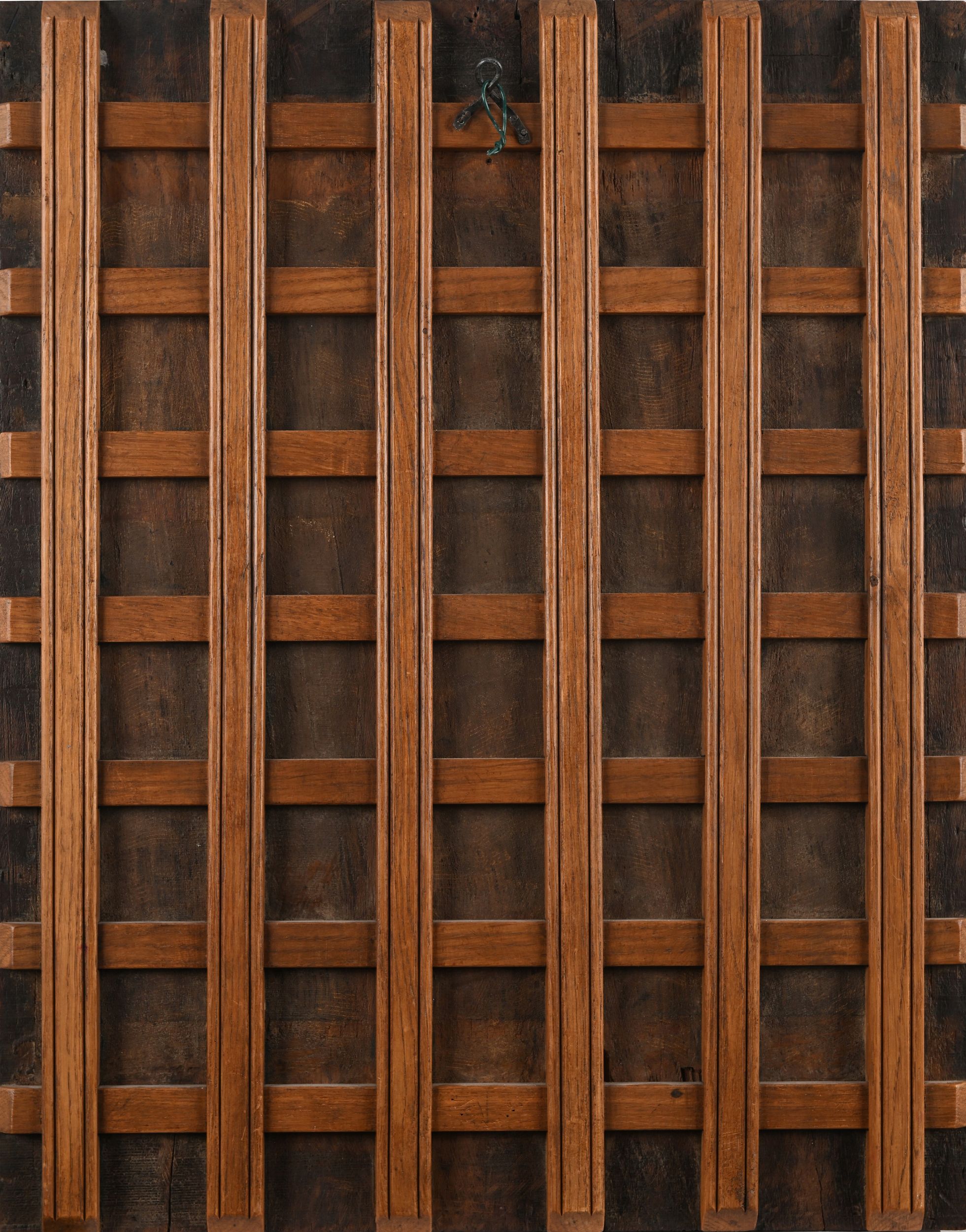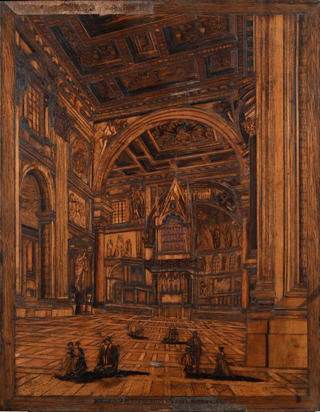 raffigurante uno scorcio della navata centrale della Basilica di San Giovanni in Laterano col ciborio gotico e figure in primo piano. Lievi difetti e piccole mancanze