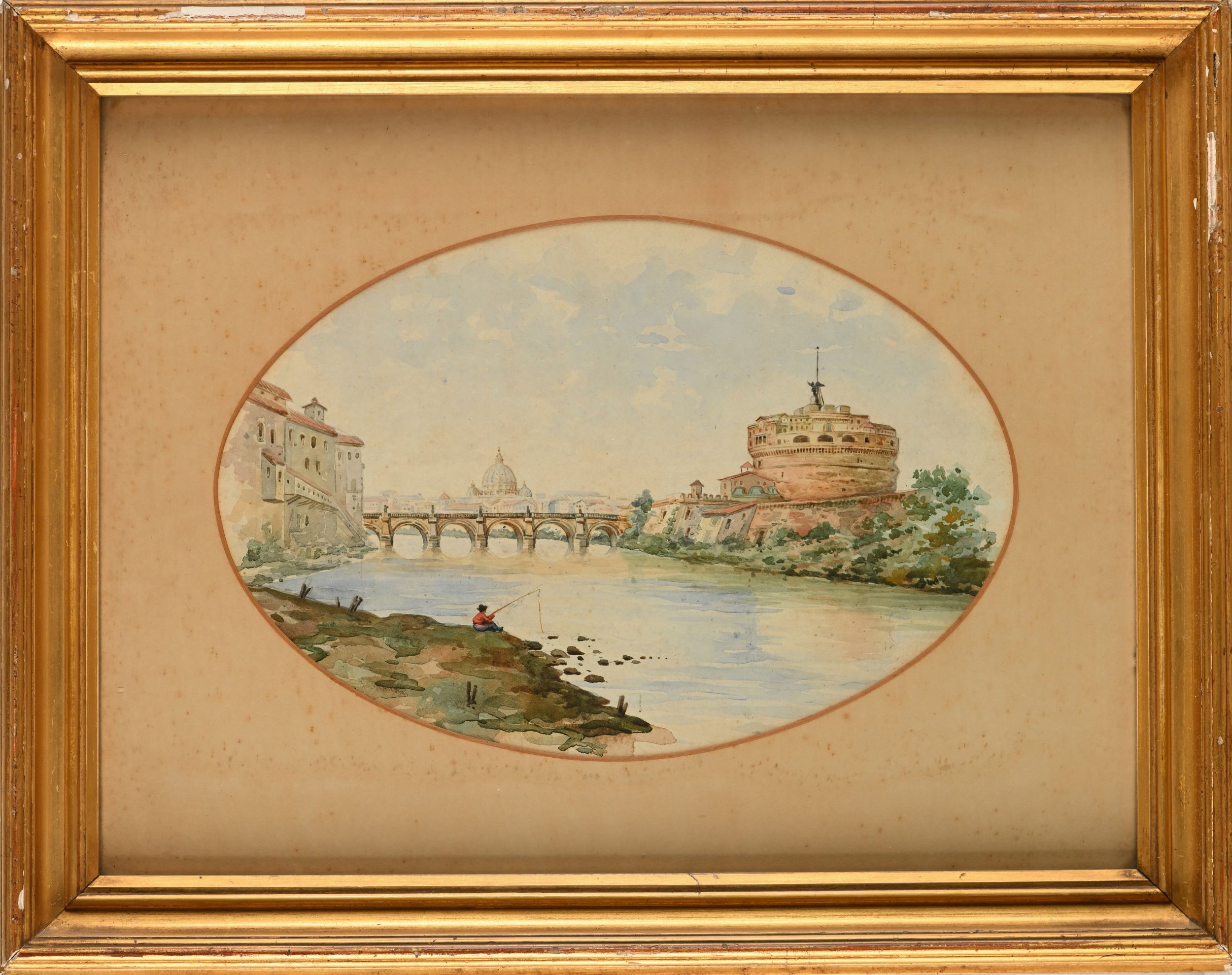 Coppia di acquarelli di vedute di Roma a) Ponte Sant'Angelo b) Colosseo