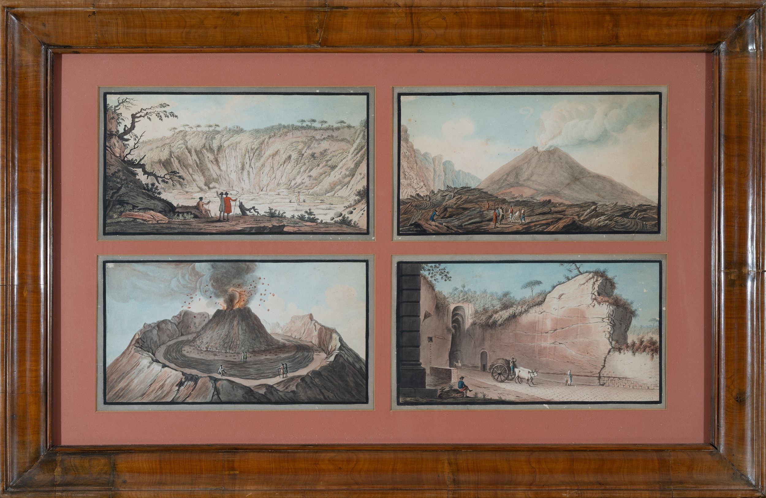 4 gouaches su carta entro cornice, cm 20x40 cad.