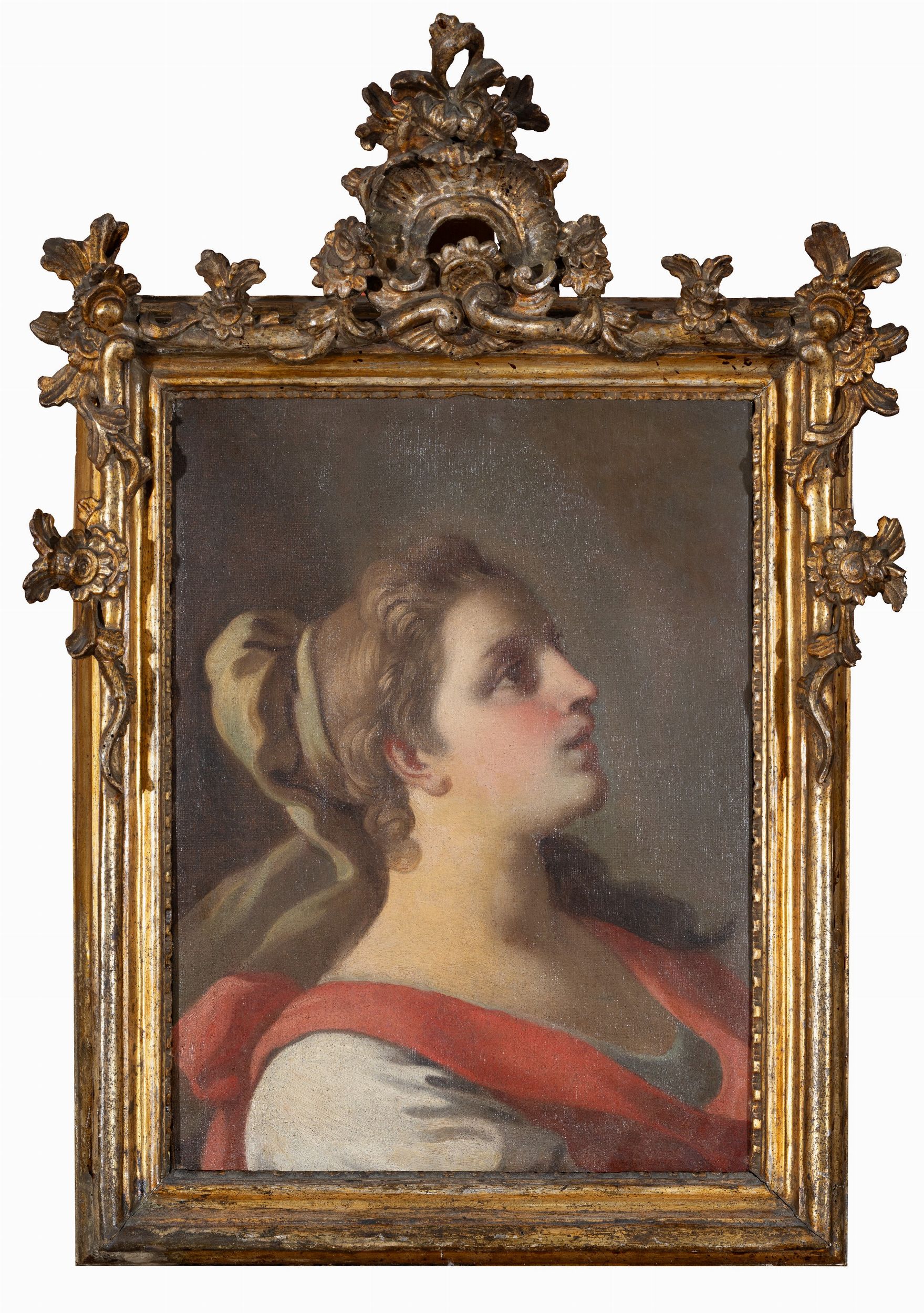 entro ricca cornice in legno intagliata con cimasa