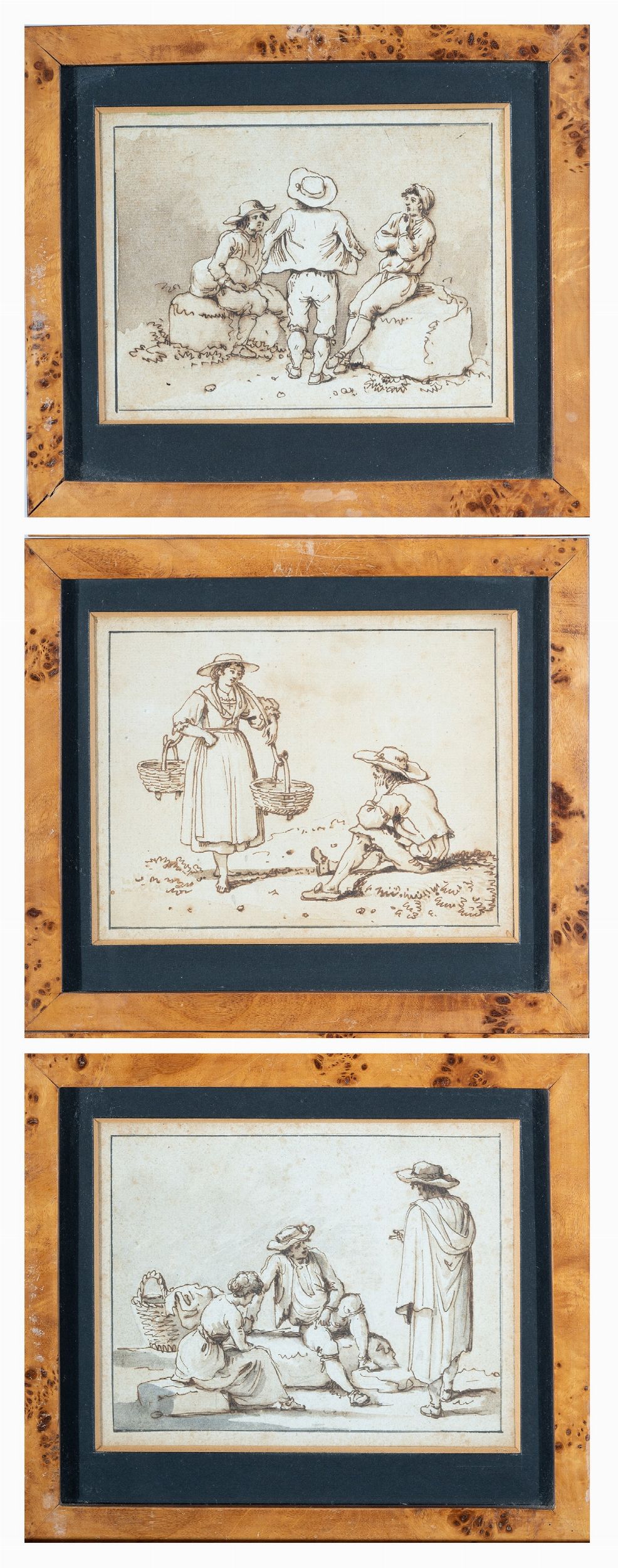 Lotto unico di n. 3 disegni di figure napoletane in costume