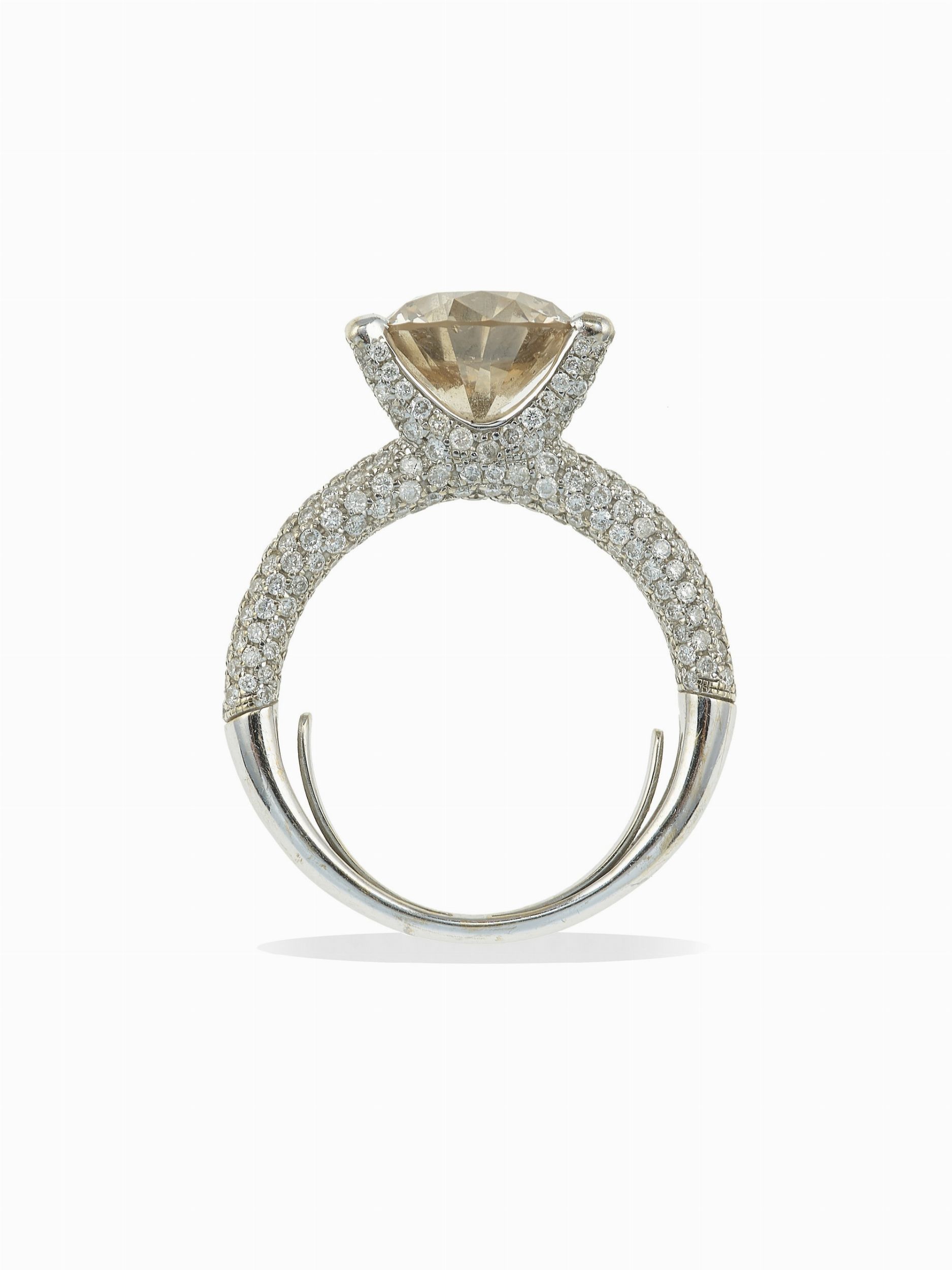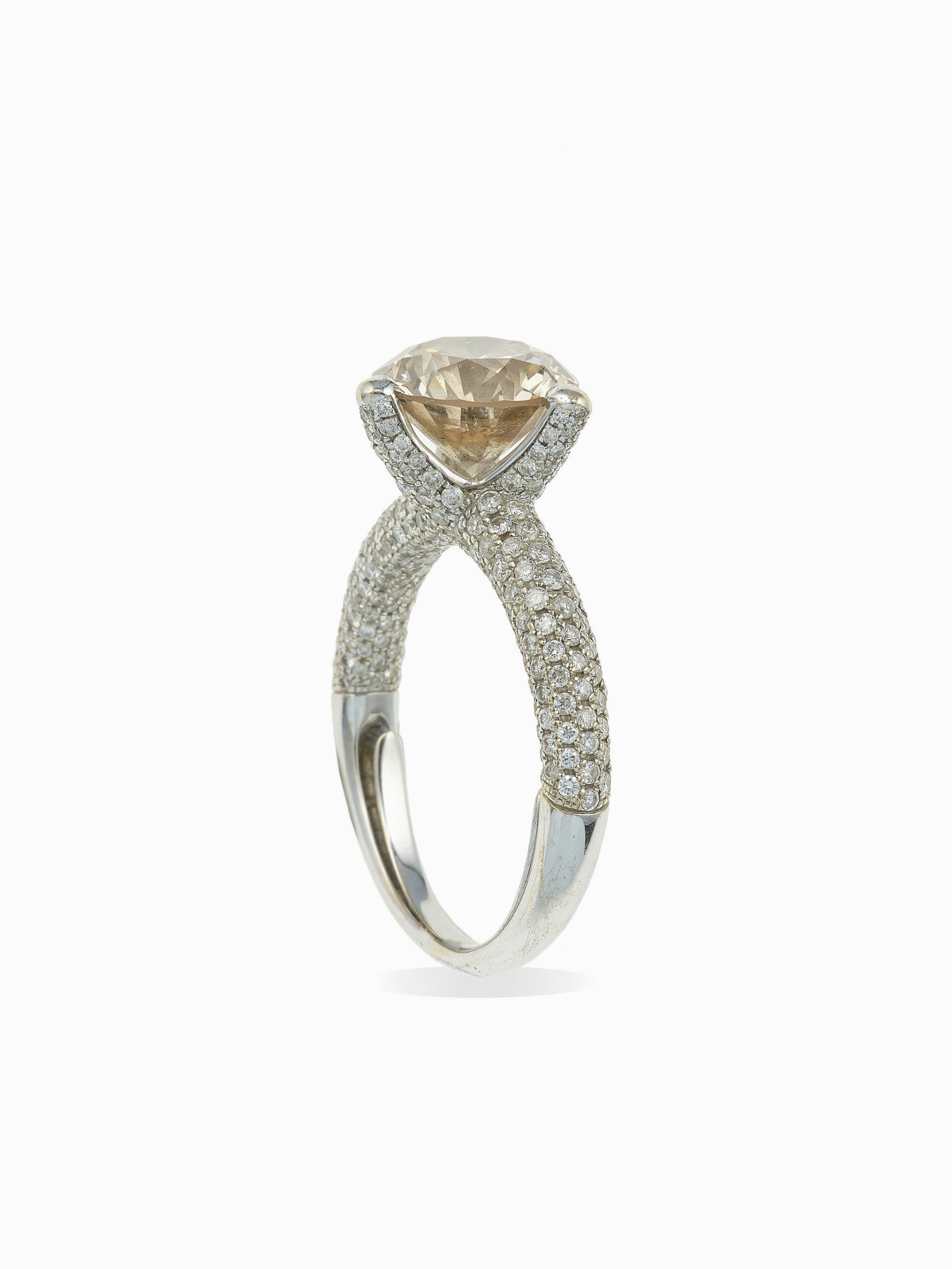 Anello con diamante taglio brillante di ct 4.13, natural fancy brown
