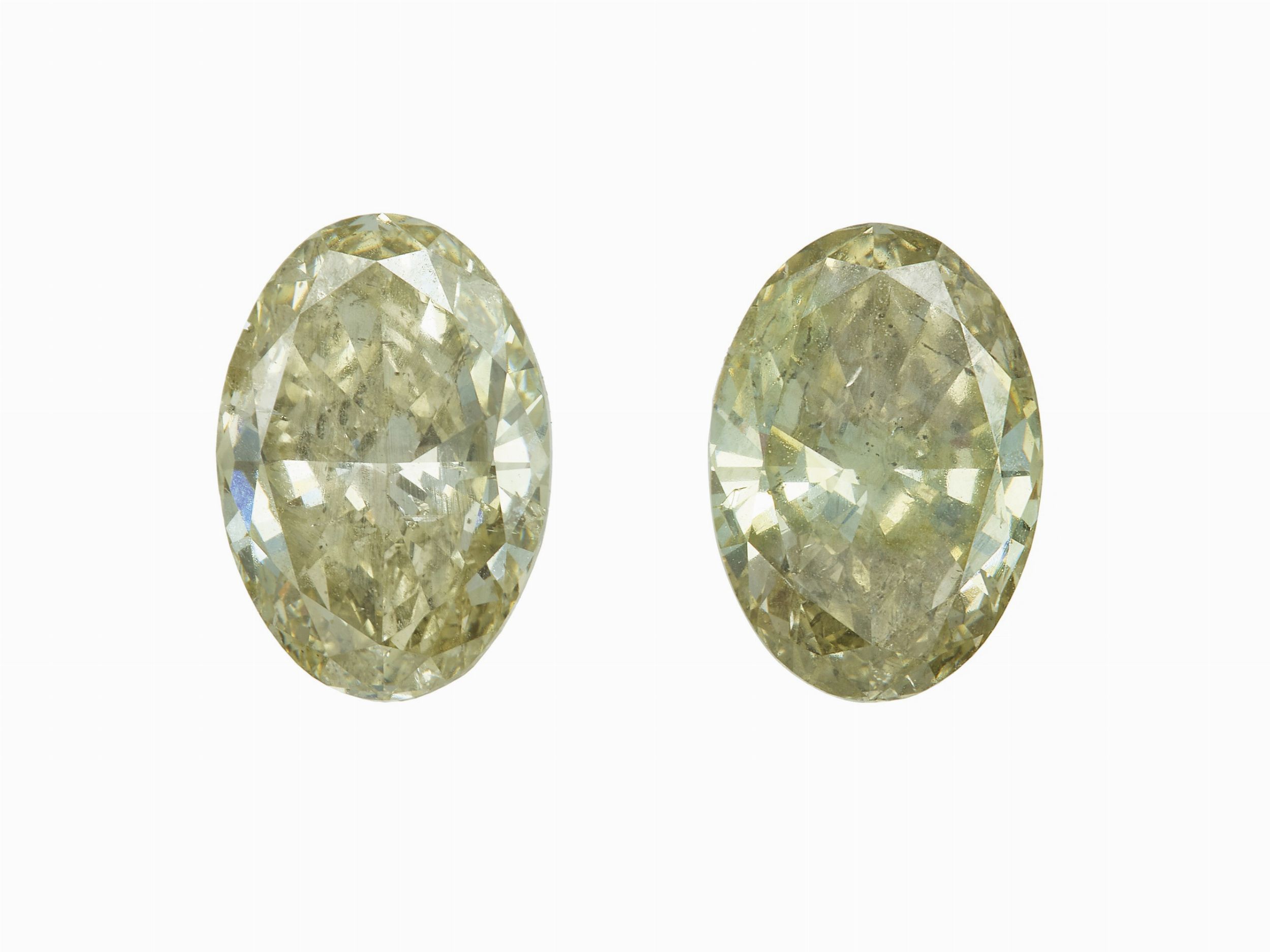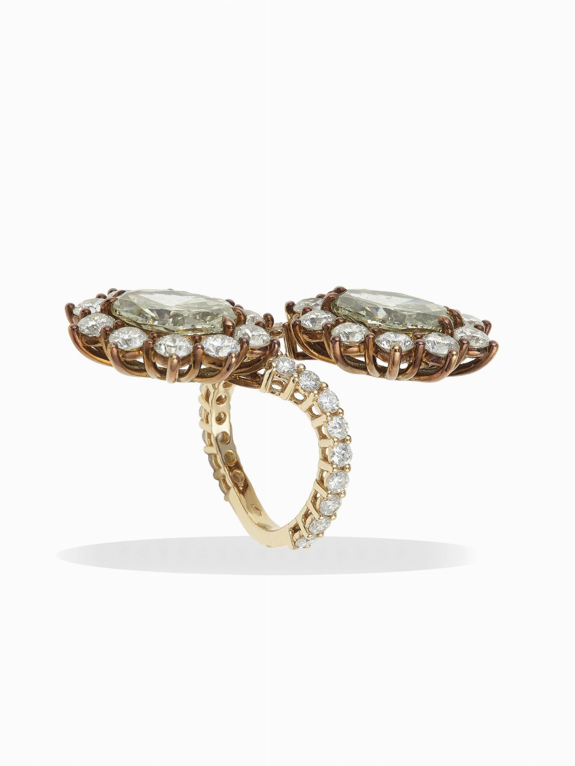 Anello con due diamanti taglio ovale di ct 4.07 e 4.14, natural fancy yellow-gre [..]