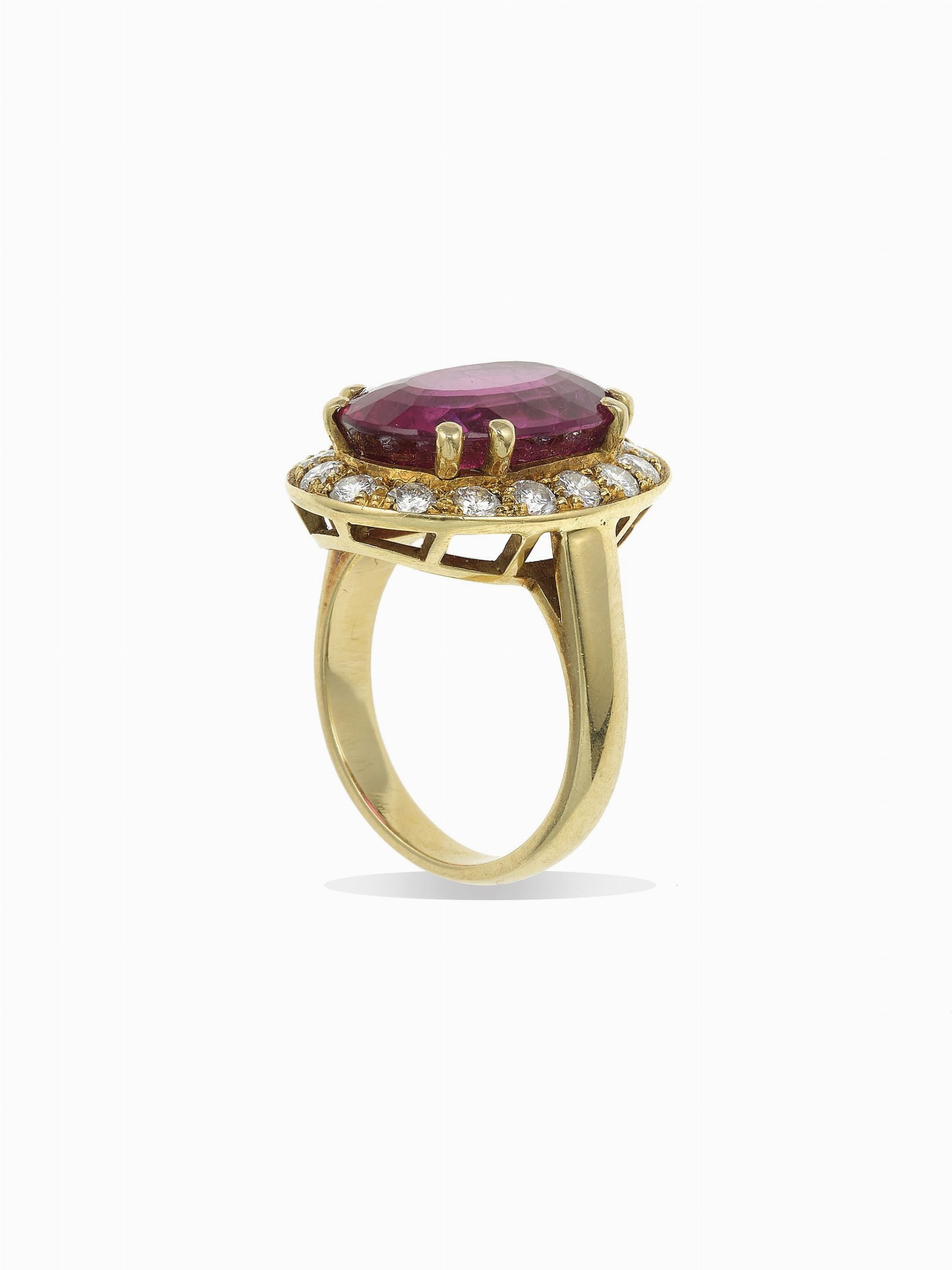Anello con grande rubellite e diamanti a contorno