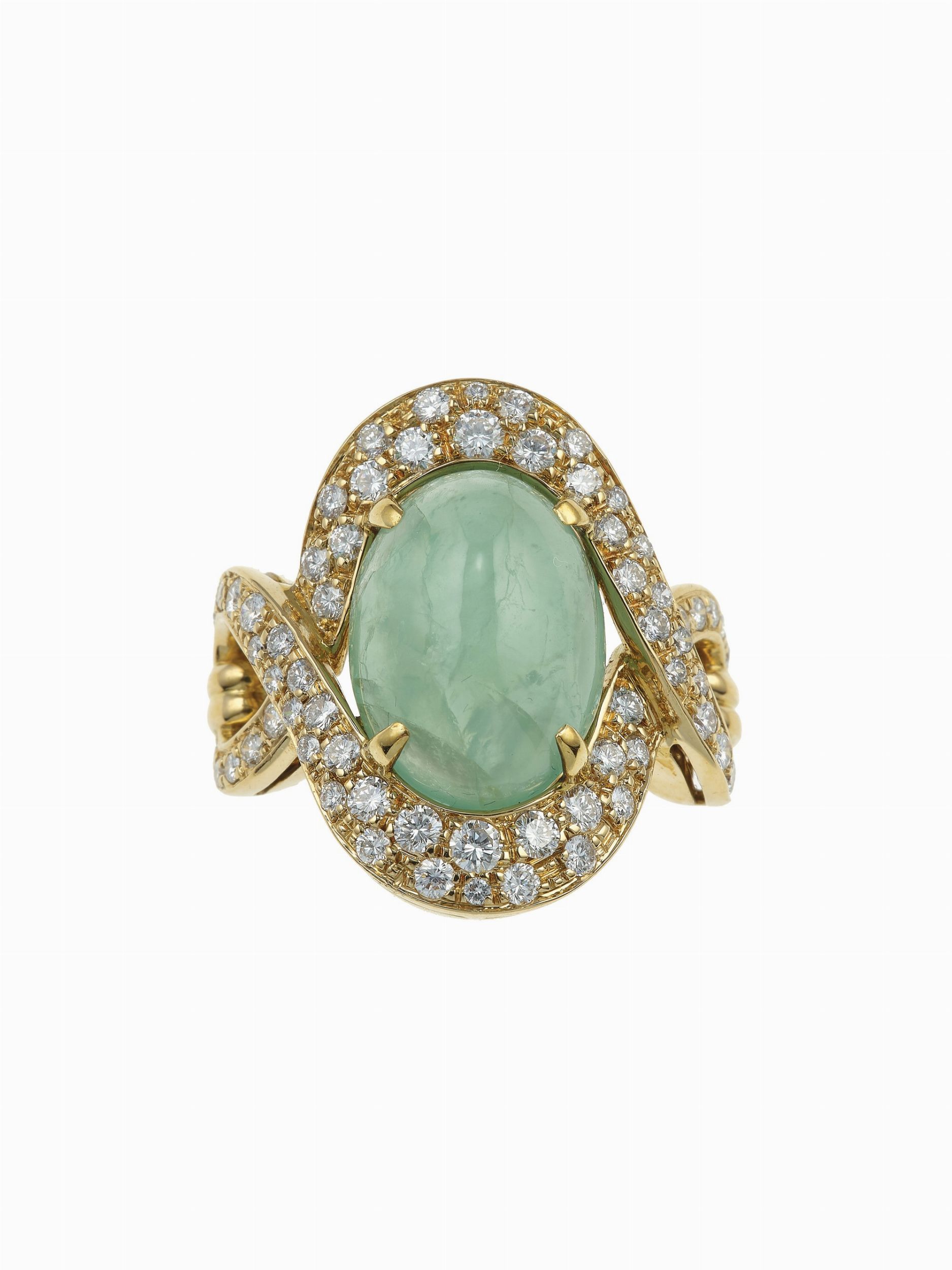 Anello con smeraldo taglio cabochon e diamanti