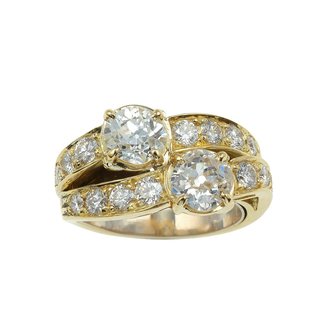 Anello contrariè con due diamanti di vecchio taglio e piccoli diamanti taglio b [..]