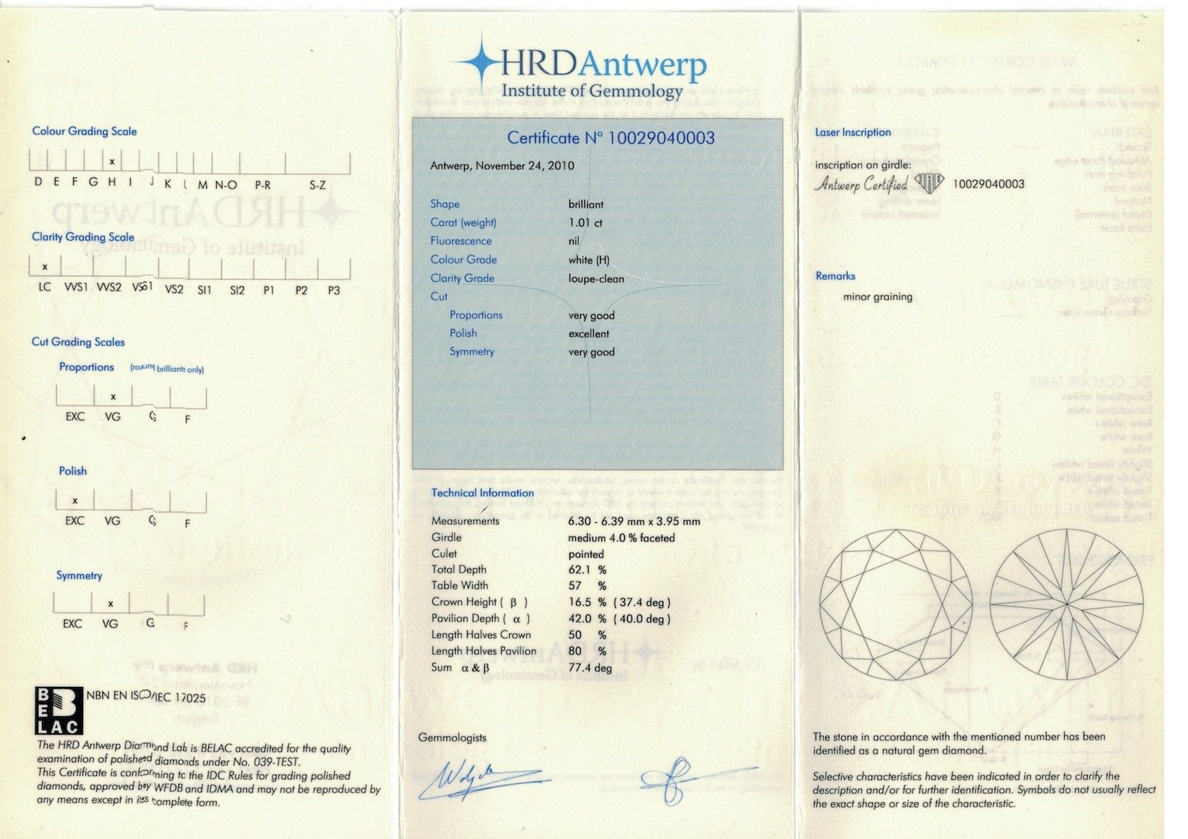 Diamante taglio rotondo a brillante di ct 1.01, colore H, caratteristiche interne [..]