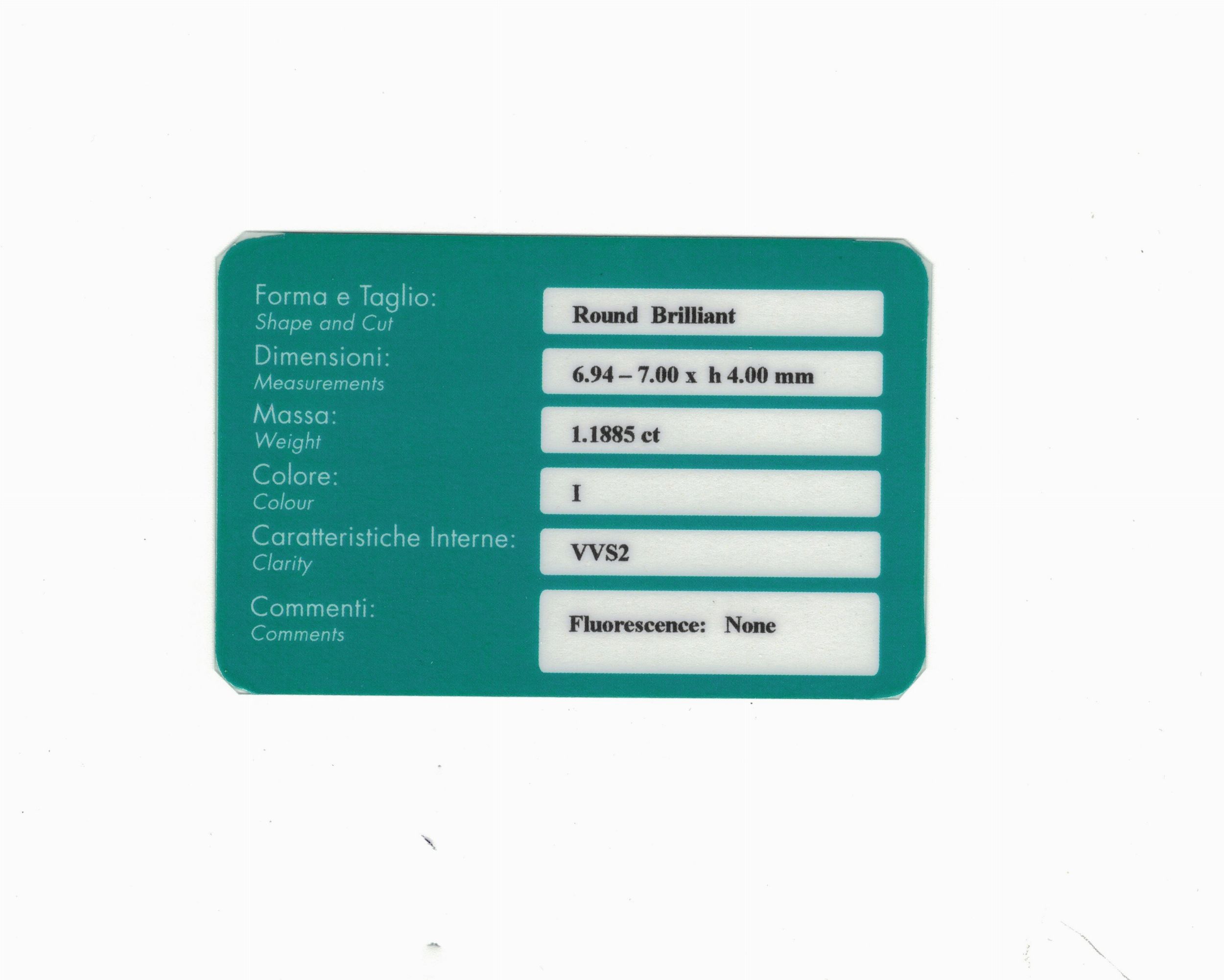 Diamante taglio rotondo a brillante di ct 1.1885, colore I, caratteristiche interne [..]