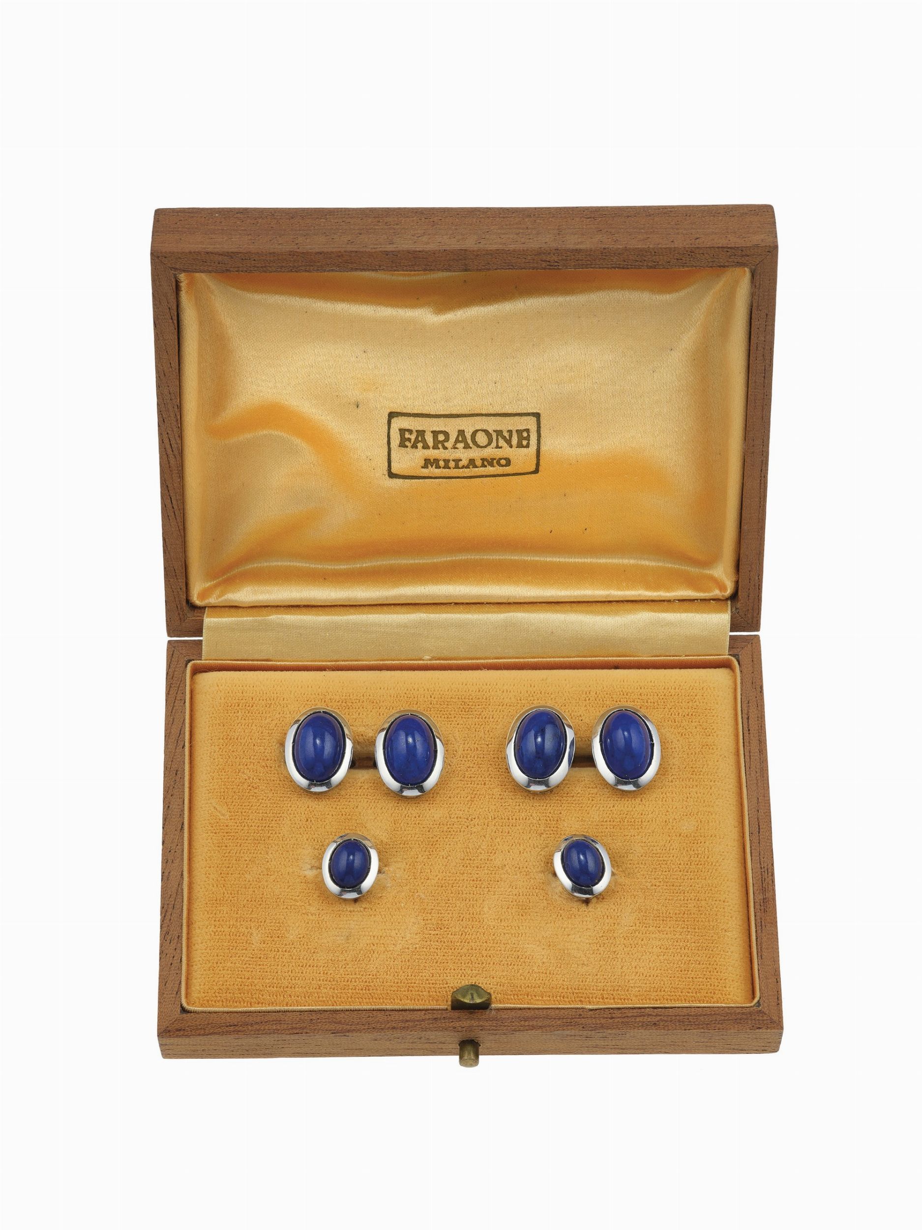 Illario. Set composto da un paio di bottoni da polso da sparato con lapislazzuli