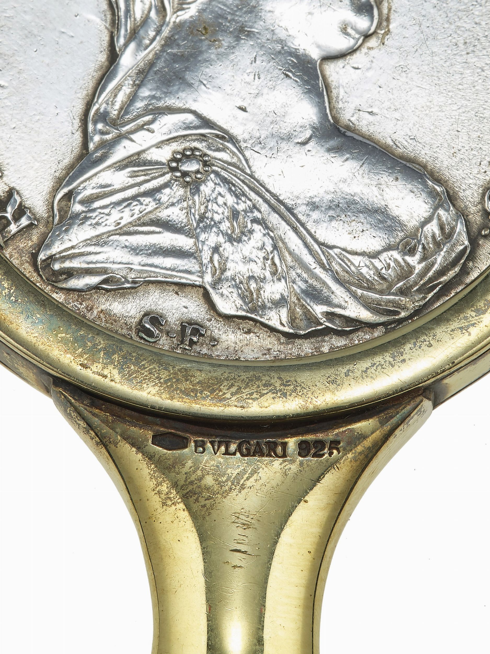 Lotto composto da accessori per signora, piccolo specchio a mano firmato Bulgari
