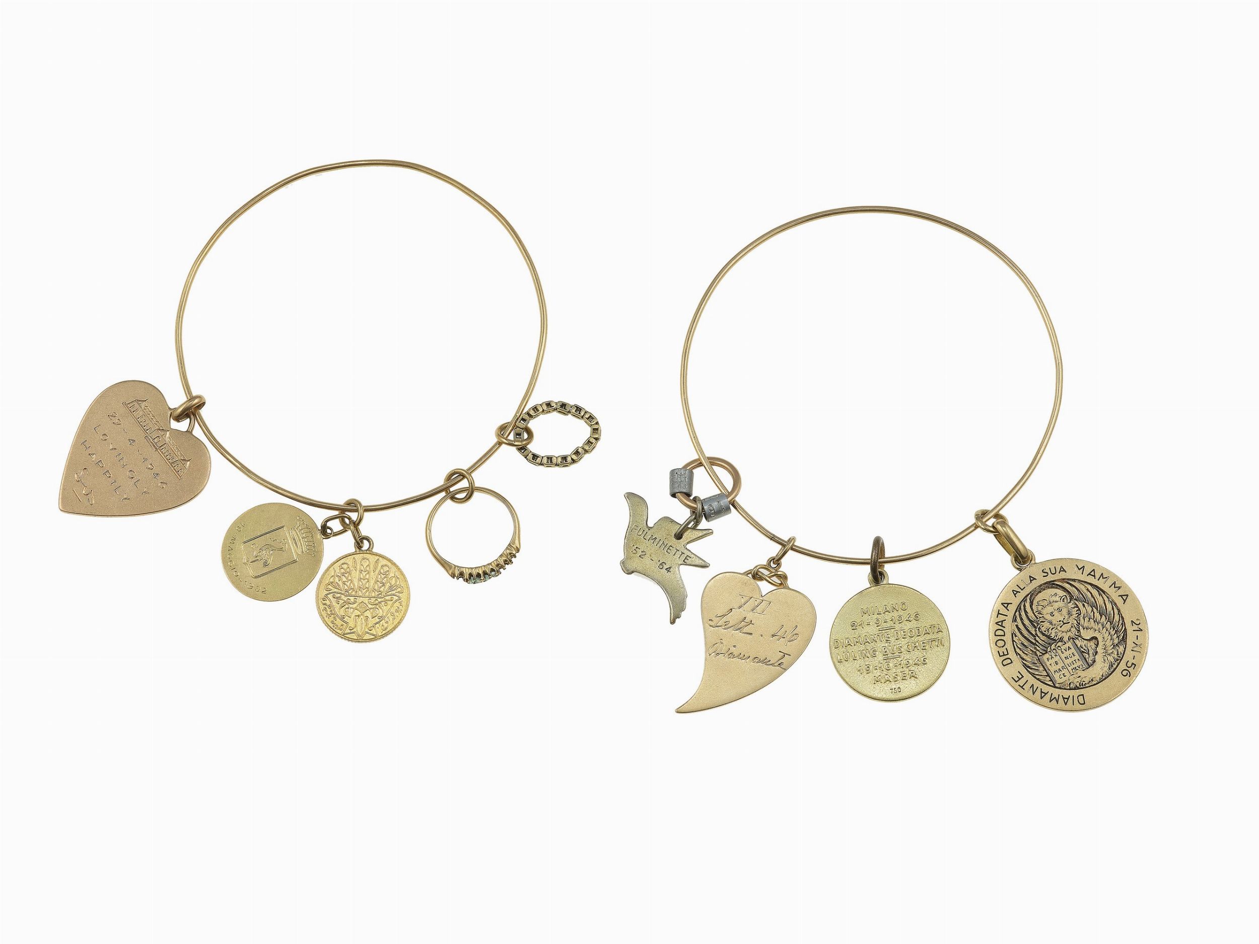 Lotto composto da due bracciali con charms ed una spilla Mezza luna