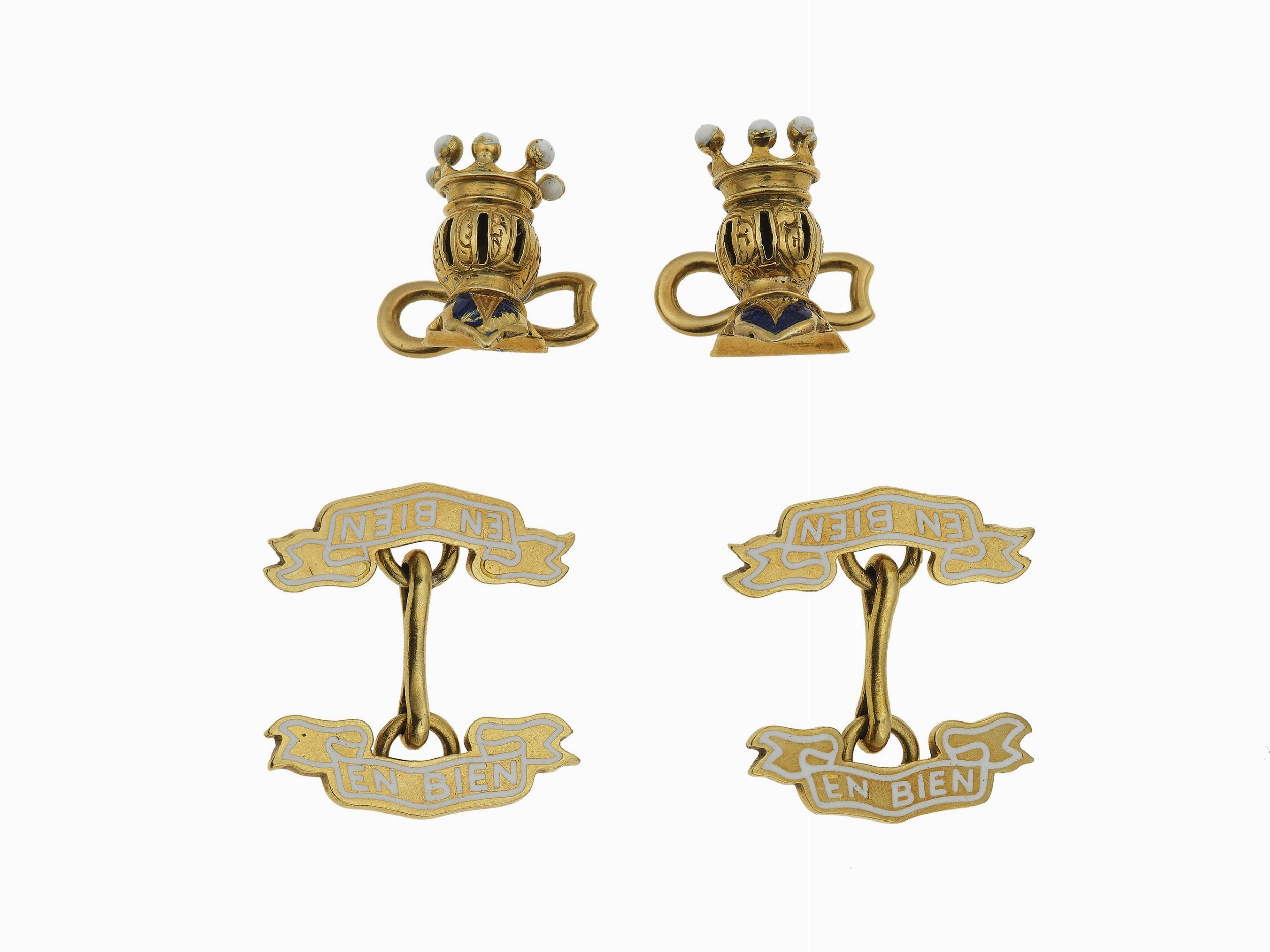 Lotto composto da un paio di bottoni da polso ed un paio di bottoni da sparato con [..]