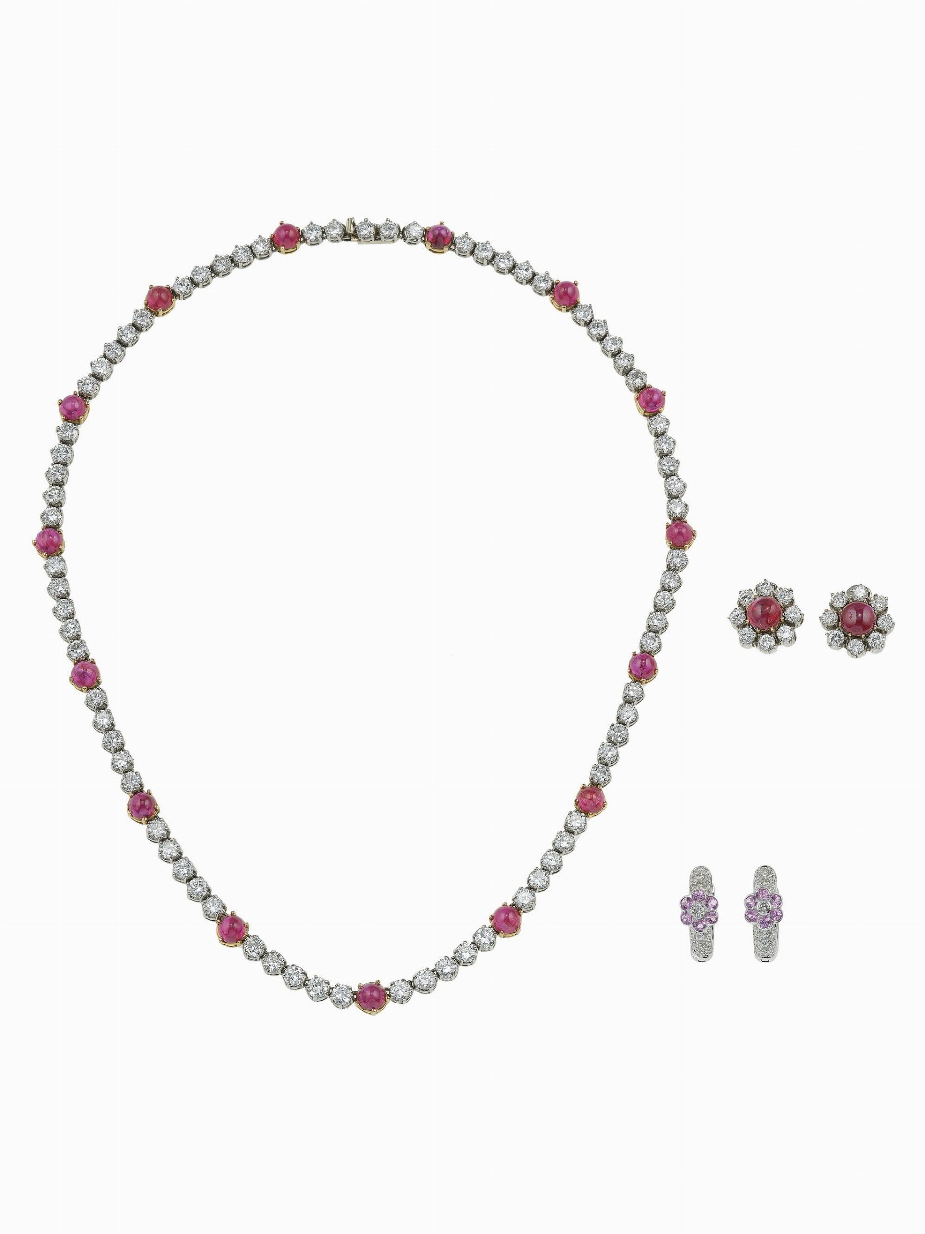 Lotto composto da una demi-parure composta da rivère ed orecchini con diamanti [..]